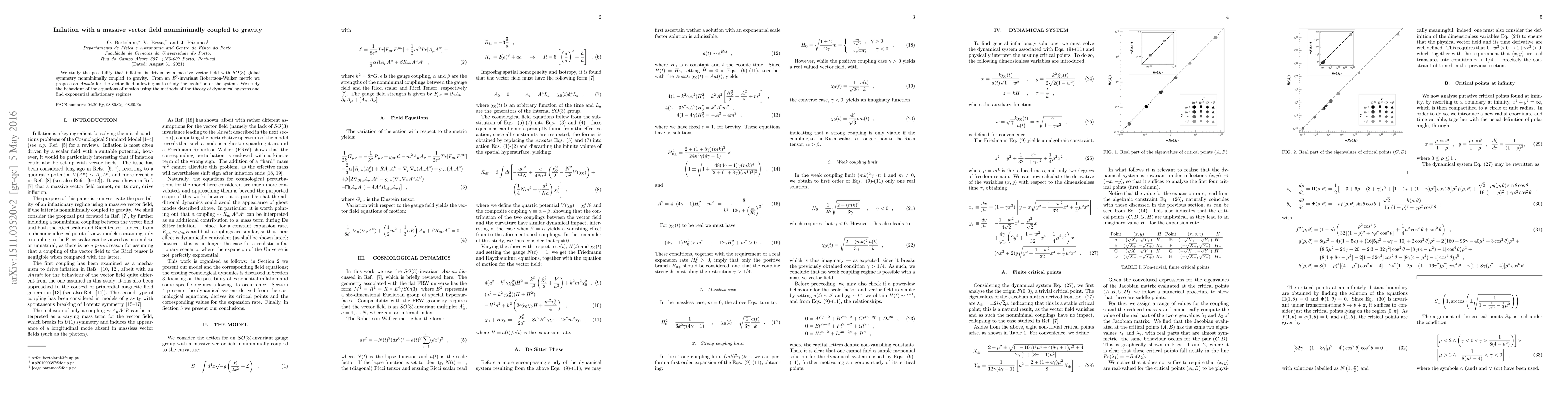 We study the possibility that inflation is driven by a massive vector field with SO(3) global symmetry nonminimally coupled to gravity. From an E^3-invariant Robertson-Walker metric we propose an Ansatz for the vector field, allowing us to study the evolution of the system. We study the behaviour of the equations of motion using the methods of the theory of dynamical systems and find exponential inflationary regimes.