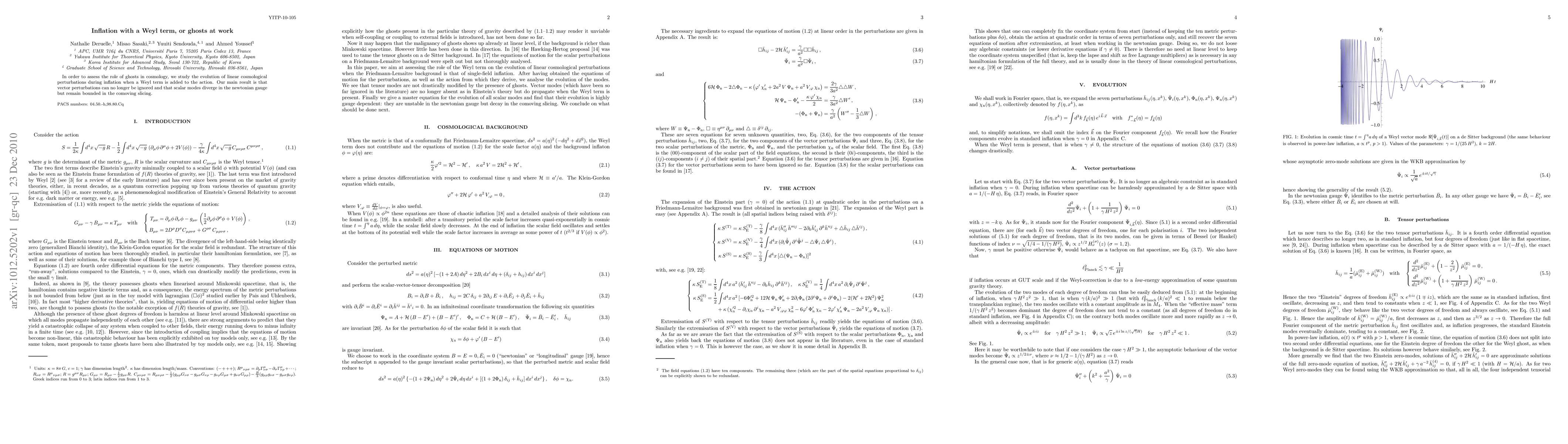 In order to assess the role of ghosts in cosmology, we study the evolution of linear cosmological perturbations during inflation when a Weyl term is added to the action. Our main result is that vector perturbations can no longer be ignored and that scalar modes diverge in the newtonian gauge but remain bounded in the comoving slicing.