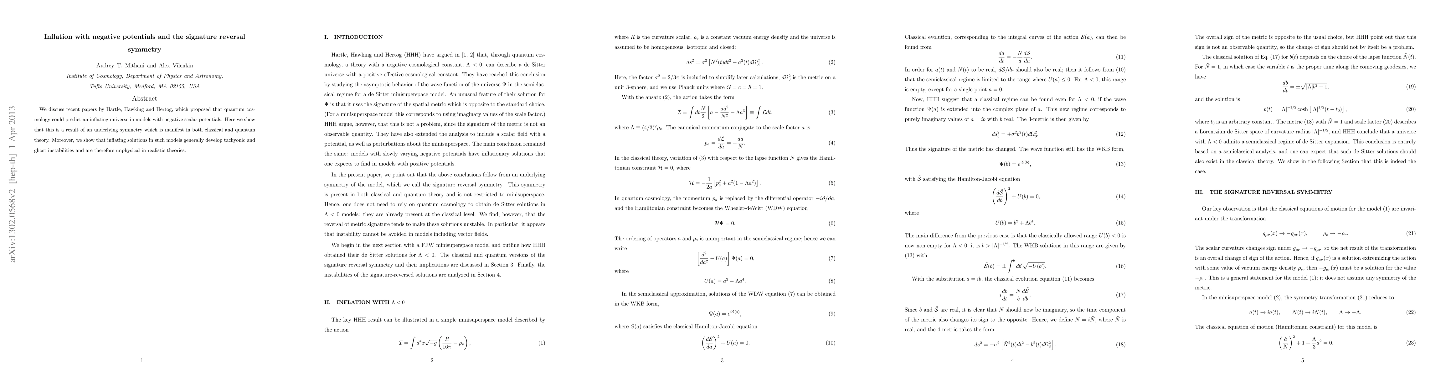 We discuss recent papers by Hartle, Hawking and Hertog, which proposed that quantum cosmology could predict an inflating universe in models with negative scalar potentials. Here we show that this is a result of an underlying symmetry which is manifest in both classical and quantum theory. Moreover, we show that inflating solutions in such models generally develop tachyonic and ghost instabilities and are therefore unphysical in realistic theories.