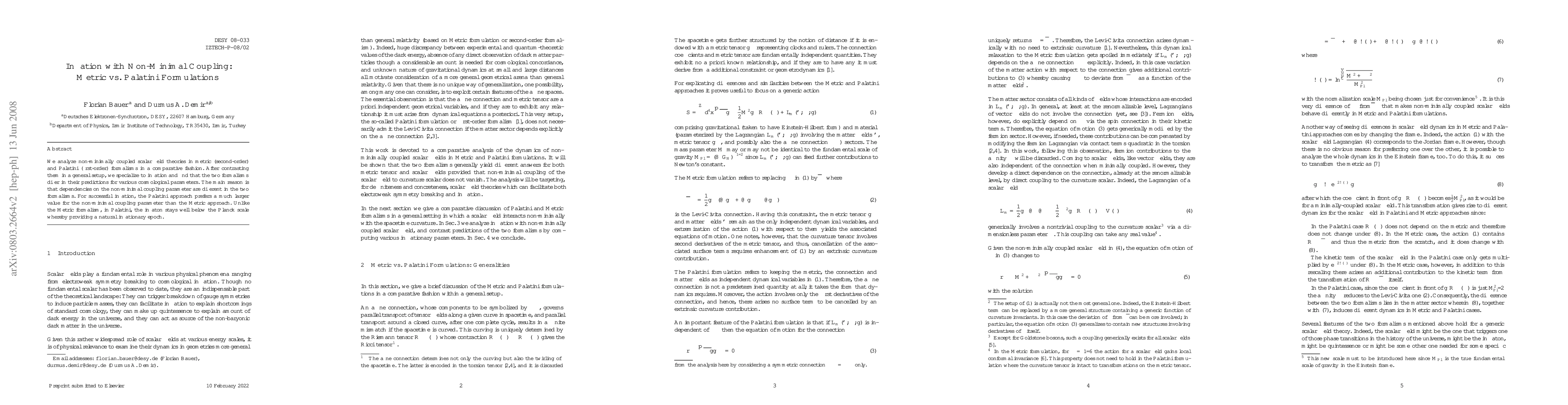 We analyze non-minimally coupled scalar field theories in metric (second-order) and Palatini (first-order) formalisms in a comparative fashion. After contrasting them in a general setup, we specialize to inflation and find that the two formalisms differ in their predictions for various cosmological parameters. The main reason is that dependencies on the non-minimal coupling parameter are different in the two formalisms. For successful inflation, the Palatini approach prefers a much larger value for the non-minimal coupling parameter than the Metric approach. Unlike the Metric formalism, in Palatini, the inflaton stays well below the Planck scale whereby providing a natural inflationary epoch.