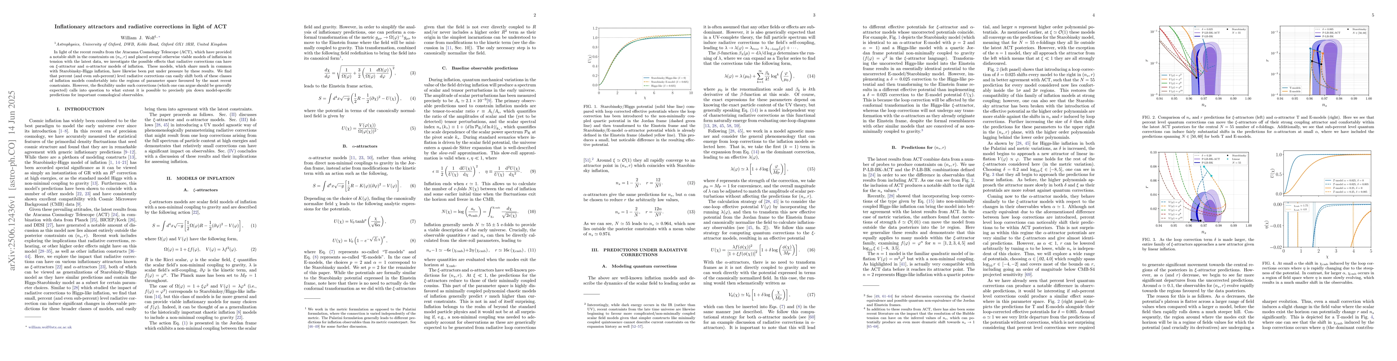 In light of the recent results from the Atacama Cosmology Telescope (ACT), which have provided a notable shift in the constraints on $(n_s, r)$ and placed several otherwise viable models of inflation in tension with the latest data, we investigate the possible effects that radiative corrections can have on $\xi$-attractor and $\alpha$-attractor models of inflation. These models, which share much in common with Starobinsky-Higgs inflation, have likewise been put under pressure by these results. We find that percent (and even sub-percent) level radiative corrections can easily shift both of these classes of inflation models comfortably into the regions of parameter space favoured by the most recent constraints. However, the flexibility under such corrections (which one can argue should be generally expected) calls into question to what extent it is possible to precisely pin down model-specific predictions for important cosmological observables.