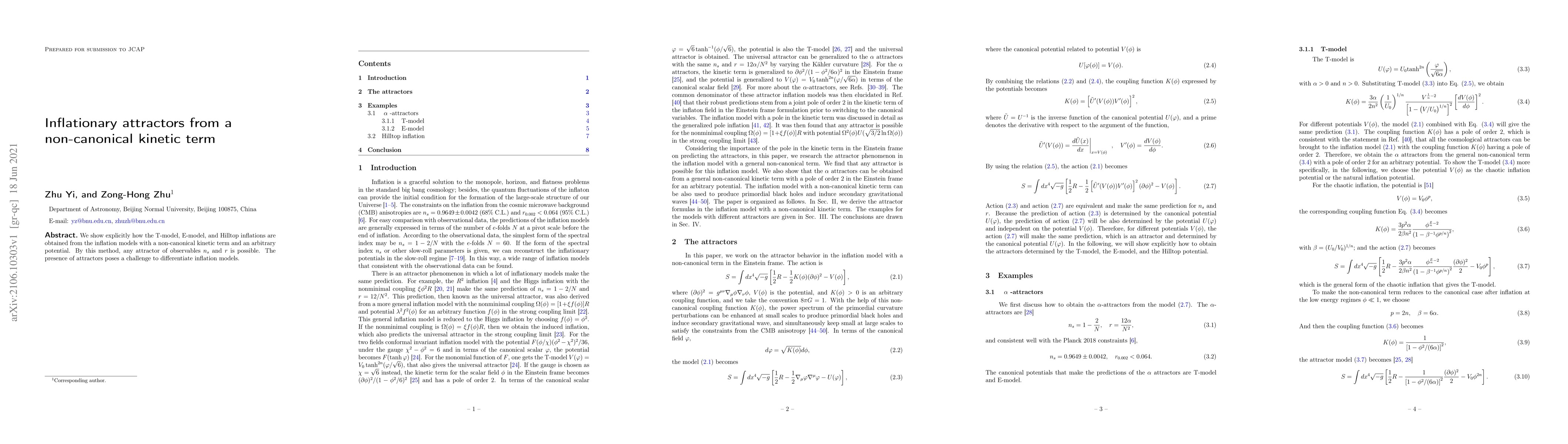 We show explicitly how the T-model, E-model, and Hilltop inflations are obtained from the inflation models with a non-canonical kinetic term and an arbitrary potential. By this method, any attractor of observables $n_s$ and $r$ is possible. The presence of attractors poses a challenge to differentiate inflation models.