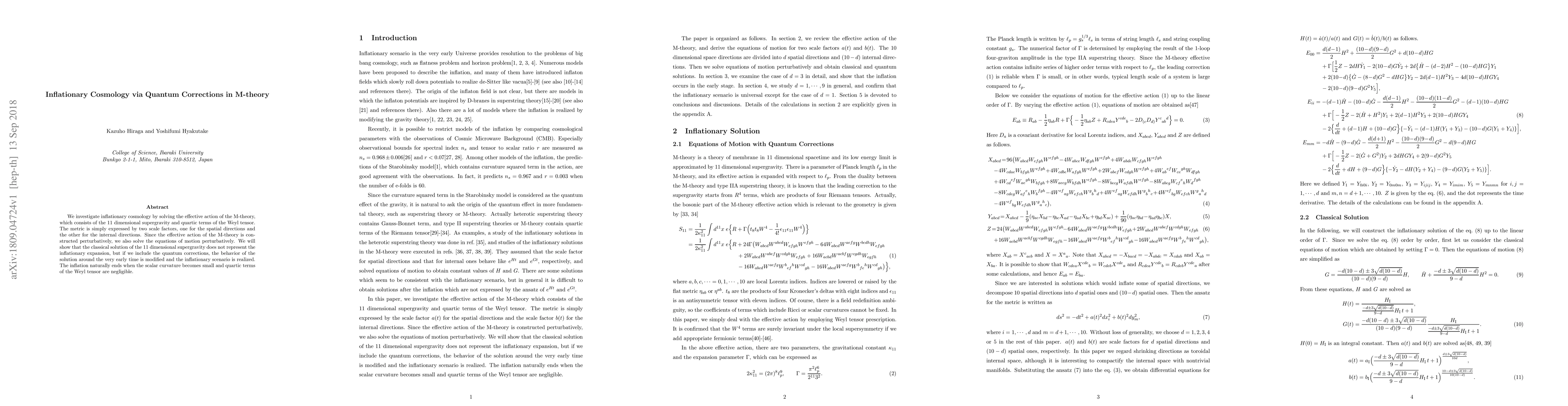 This paper explores inflationary cosmology within the framework of M-theory, revealing that quantum corrections to the effective action, which includes 11-dimensional supergravity and quartic Weyl tensor terms, lead to an inflationary expansion. The classical solution alone does not achieve inflation, but the inclusion of quantum corrections modifies the early-time behavior, resulting in a viable inflationary scenario.