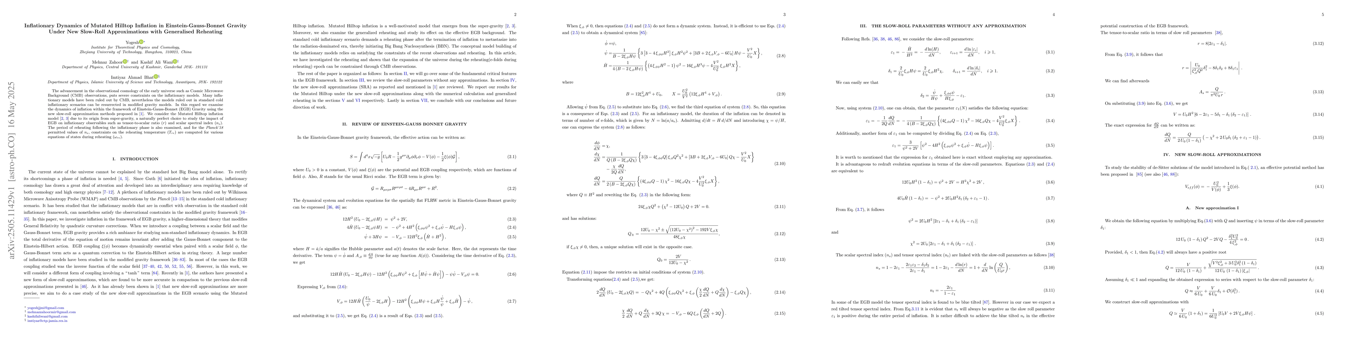 The research employs the Einstein-Gauss-Bonnet (EGB) Gravity framework, utilizing new slow-roll approximation methods from Pozdeeva et al. (2024) to examine the Mutated Hilltop inflation model, originally derived from super-gravity.