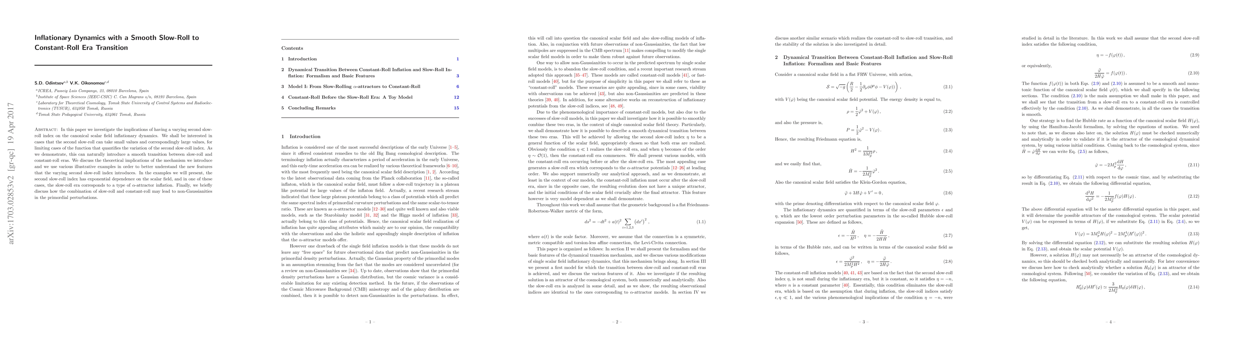 This paper explores inflationary dynamics transitioning from a slow-roll to a constant-roll era through varying second slow-roll indices. It demonstrates how small and large values of the second slow-roll index can lead to a smooth transition, introducing new features and potentially generating non-Gaussianities in primordial perturbations.
