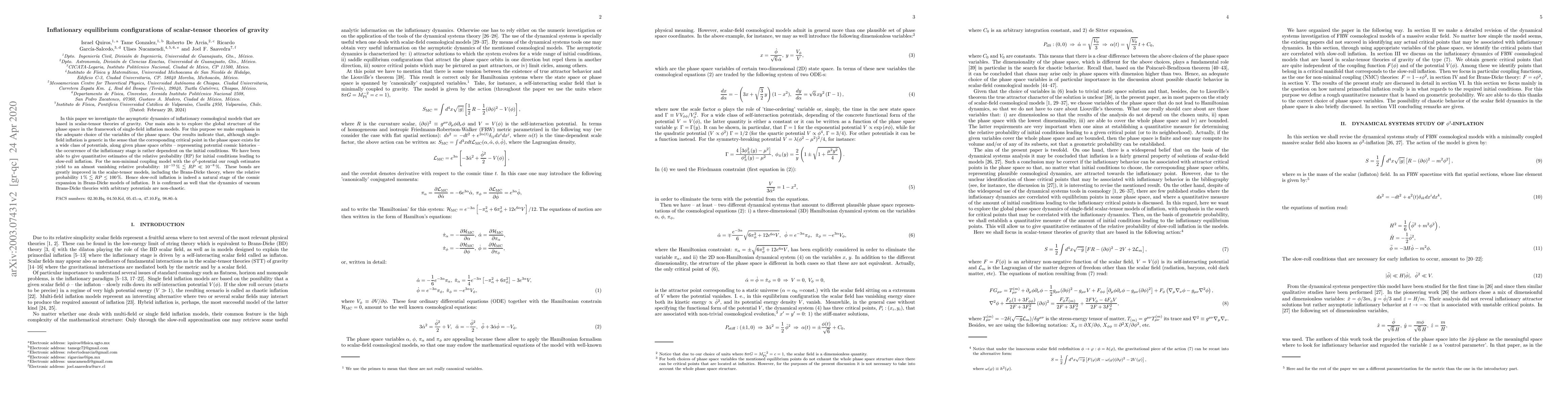 In this paper we investigate the asymptotic dynamics of inflationary cosmological models that are based in scalar-tensor theories of gravity. Our main aim is to explore the global structure of the phase space in the framework of single-field inflation models. For this purpose we make emphasis in the adequate choice of the variables of the phase space. Our results indicate that, although single-field inflation is generic in the sense that the corresponding critical point in the phase space exists for a wide class of potentials, along given phase space orbits -- representing potential cosmic histories -- the occurrence of the inflationary stage is rather dependent on the initial conditions. We have been able to give quantitative estimates of the relative probability (RP) for initial conditions leading to slow-roll inflation. For the non-minimal coupling model with the $\phi^2$-potential our rough estimates yield to an almost vanishing relative probability: $10^{-13}\,\%\lesssim RP\ll 10^{-8}\,\%$. These bonds are greatly improved in the scalar-tensor models, including the Brans-Dicke theory, where the relative probability $1\,\%\lesssim RP\leq 100\,\%$. Hence slow-roll inflation is indeed a natural stage of the cosmic expansion in Brans-Dicke models of inflation. It is confirmed as well that the dynamics of vacuum Brans-Dicke theories with arbitrary potentials are non-chaotic.
