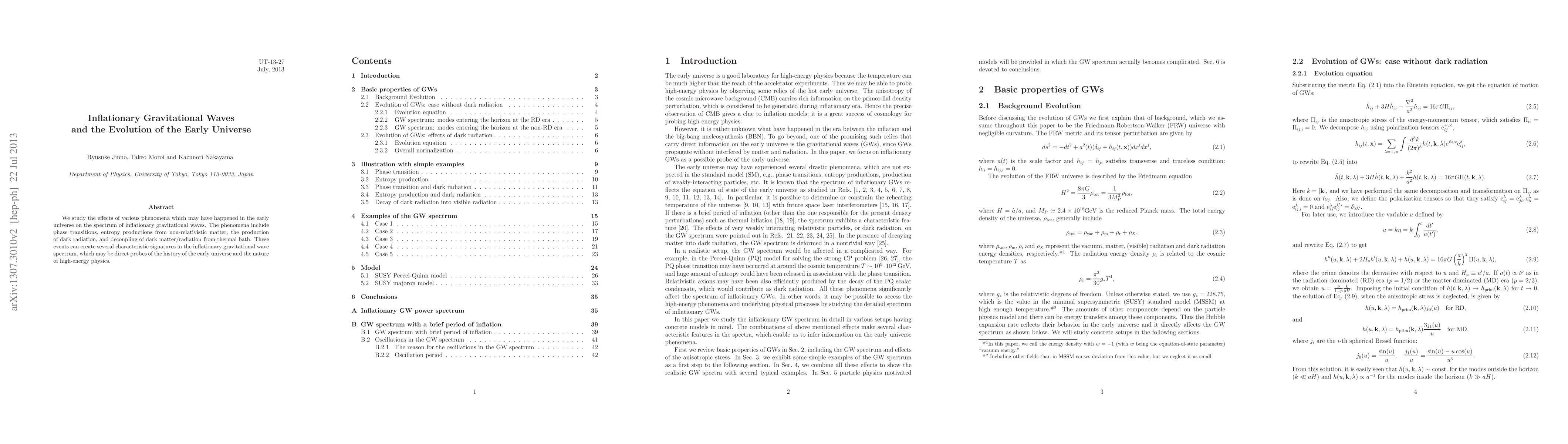 This paper investigates how phenomena like phase transitions and matter decoupling influenced the spectrum of inflationary gravitational waves, proposing these waves as potential direct probes of early universe conditions and high-energy physics.