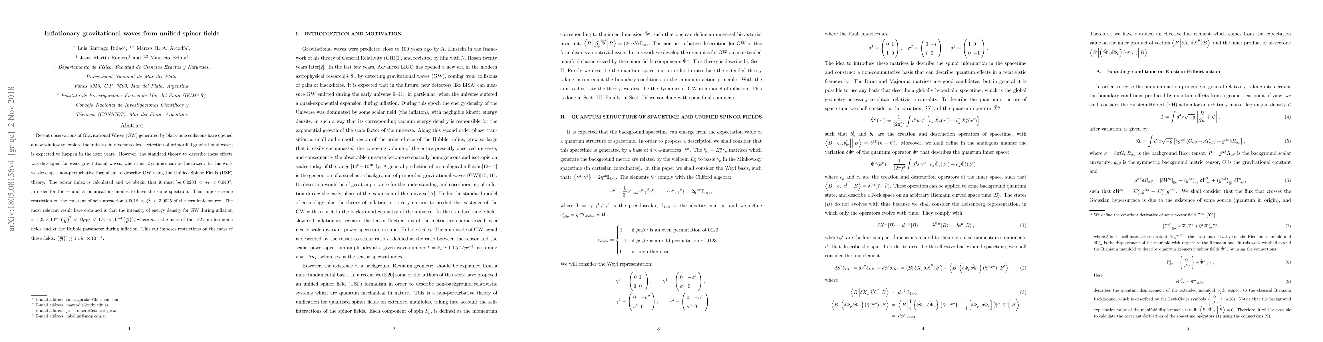 This paper develops a non-perturbative formalism to describe inflationary gravitational waves using Unified Spinor Fields theory, finding that the tensor index must lie between 0.0283 and 0.0407. The study also determines the energy density of gravitational waves during inflation, imposing constraints on the mass of the fermionic fields involved.