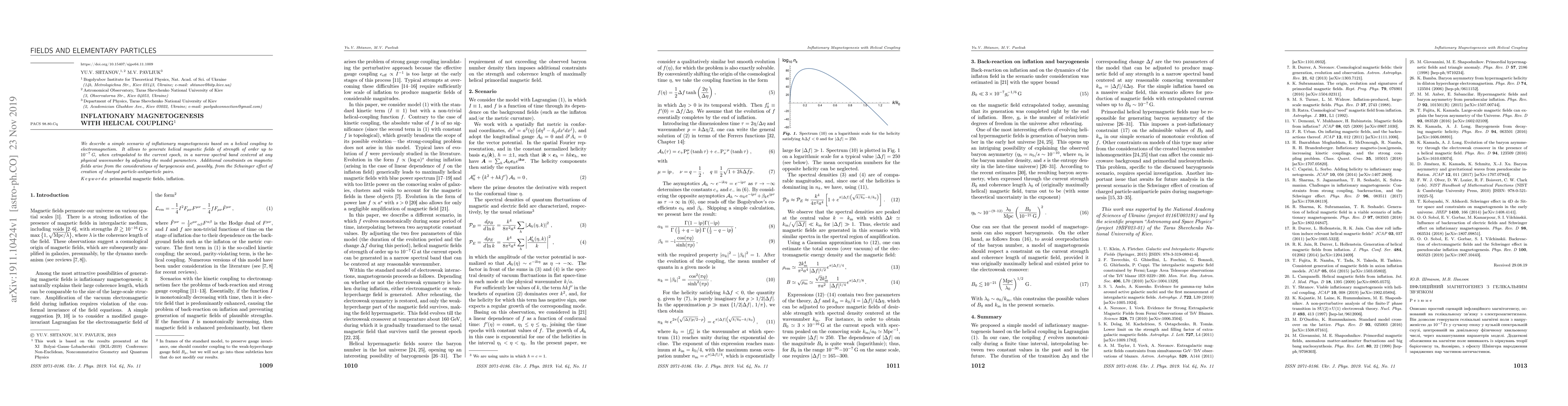 This paper proposes a model of inflationary magnetogenesis that generates helical magnetic fields through a helical coupling mechanism, potentially producing fields of up to $10^{-7}\,\text{G}$ today, with constraints from baryogenesis and the Schwinger effect.