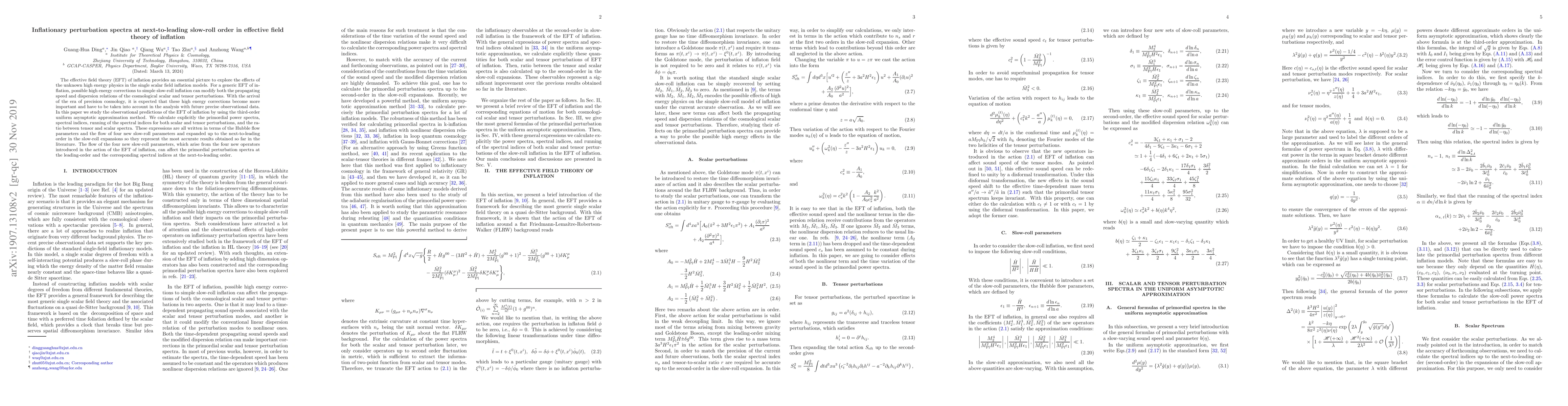 The effective field theory (EFT) of inflation provides an essential picture to explore the effects of the unknown high energy physics in the single scalar field inflation models. For a generic EFT of inflation, possible high energy corrections to simple slow-roll inflation can modify both the propagating speed and dispersion relations of the cosmological scalar and tensor perturbations. With the arrival of the era of precision cosmology, it is expected that these high energy corrections become more important and have to be taken into account in the analysis with future precise observational data. In this paper we study the observational predictions of the EFT of inflation by using the third-order uniform asymptotic approximation method. We calculate explicitly the primordial power spectra, spectral indices, running of the spectral indices for both scalar and tensor perturbations, and the ratio between tensor and scalar spectra. These expressions are all written in terms of the Hubble flow parameters and the flow of four new slow-roll parameters and expanded up to the next-to-leading order in the slow-roll expansions so they represent the most accurate results obtained so far in the literature. The flow of the four new slow-roll parameters, which arise from the four new operators introduced in the action of the EFT of inflation, can affect the primordial perturbation spectra at the leading-order and the corresponding spectral indices at the next-to-leading order.