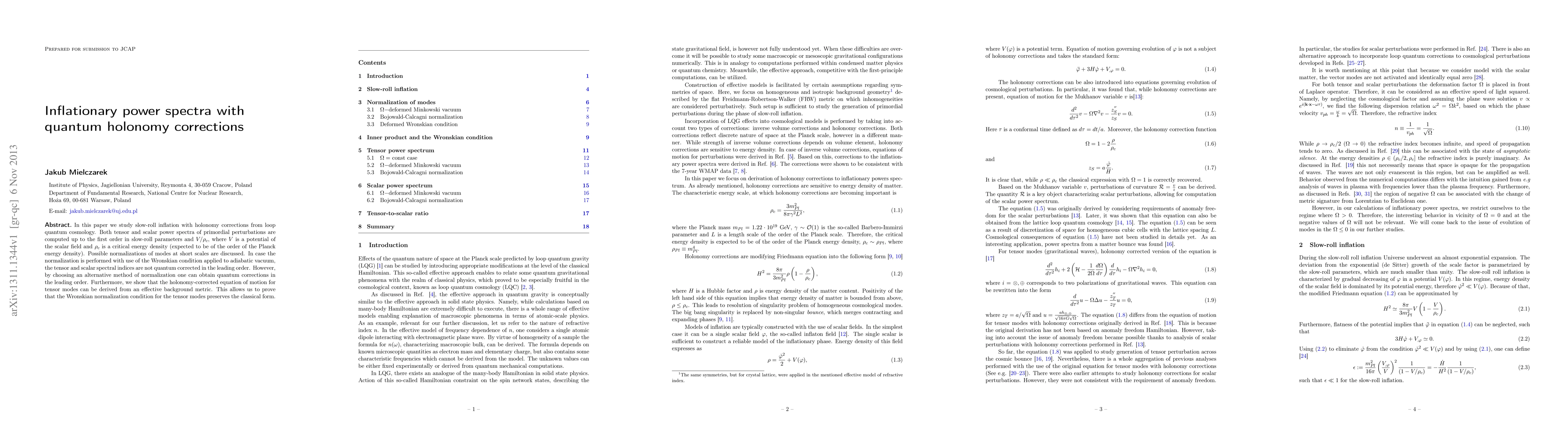 This paper investigates slow-roll inflation incorporating holonomy corrections from loop quantum cosmology. It computes tensor and scalar power spectra with quantum corrections, showing that alternative normalization methods can yield quantum effects in the leading order, while the Wronskian condition preserves classical forms.