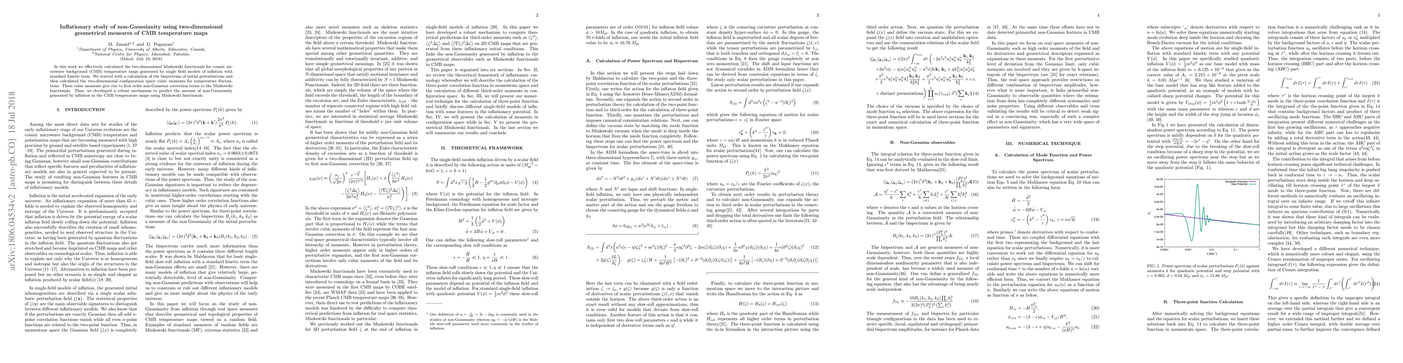 This paper calculates the two-dimensional Minkowski functionals for CMB temperature maps from single field inflationary models, incorporating non-Gaussian corrections via cubic moments. It provides a method to quantify non-Gaussianity in the CMB using geometrical measures.