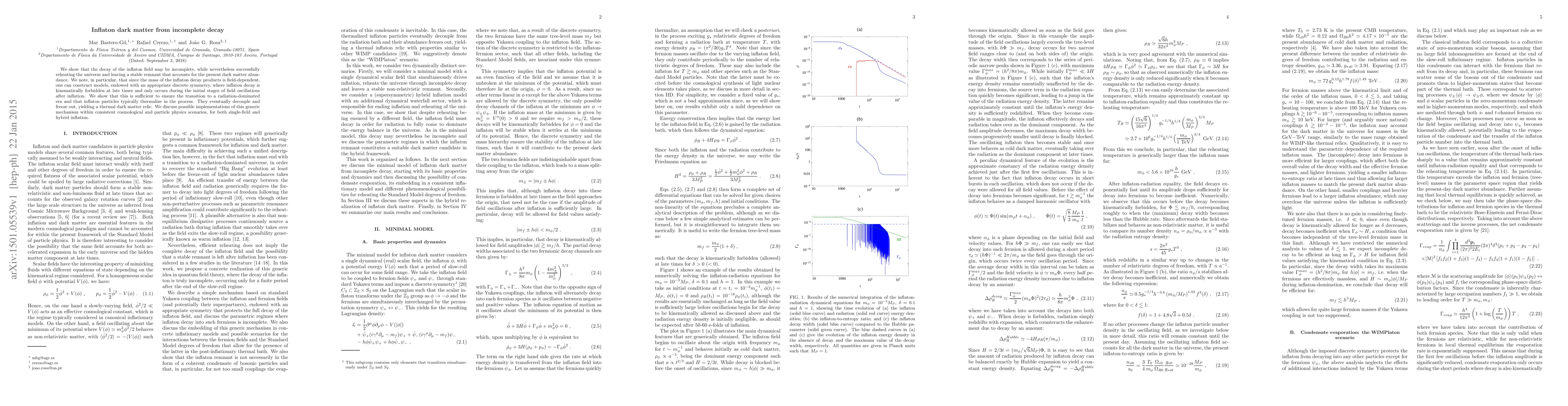 This paper proposes that incomplete decay of the inflaton field can generate a stable remnant that constitutes the present dark matter abundance. It demonstrates that inflaton decay products' mass dependency allows for models where decay is only possible during early field oscillations, leading to a thermal relic dark matter population.