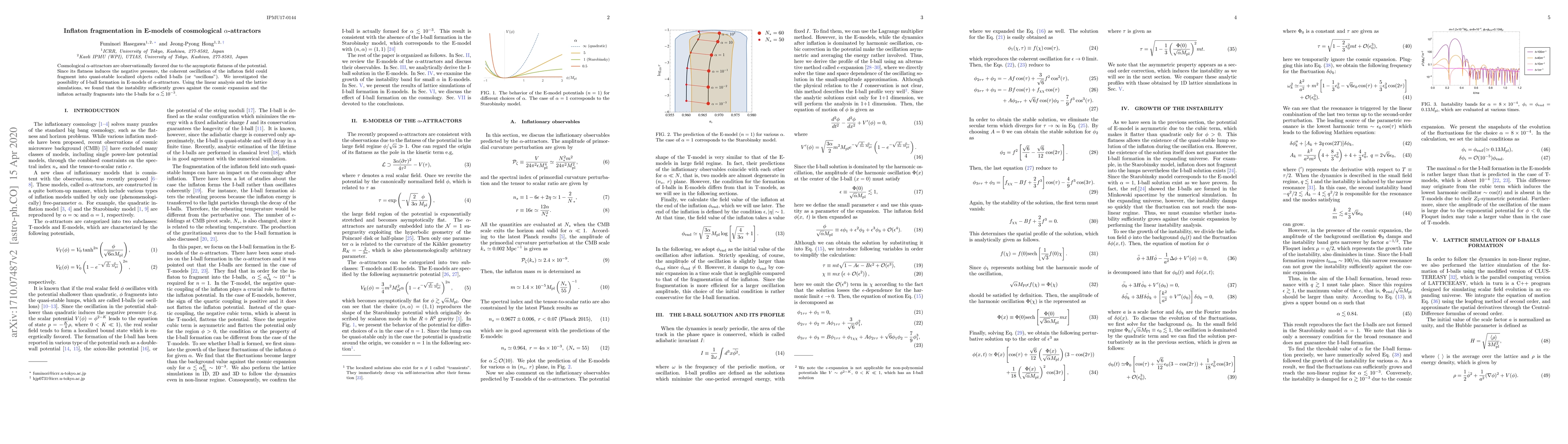 This paper investigates the formation of I-balls in E-models of cosmological $\alpha$-attractors, finding that for $\alpha\lesssim10^{-3}$, the inflaton field's coherent oscillation fragments into quasi-stable localized objects due to the potential's asymptotic flatness and induced negative pressure.