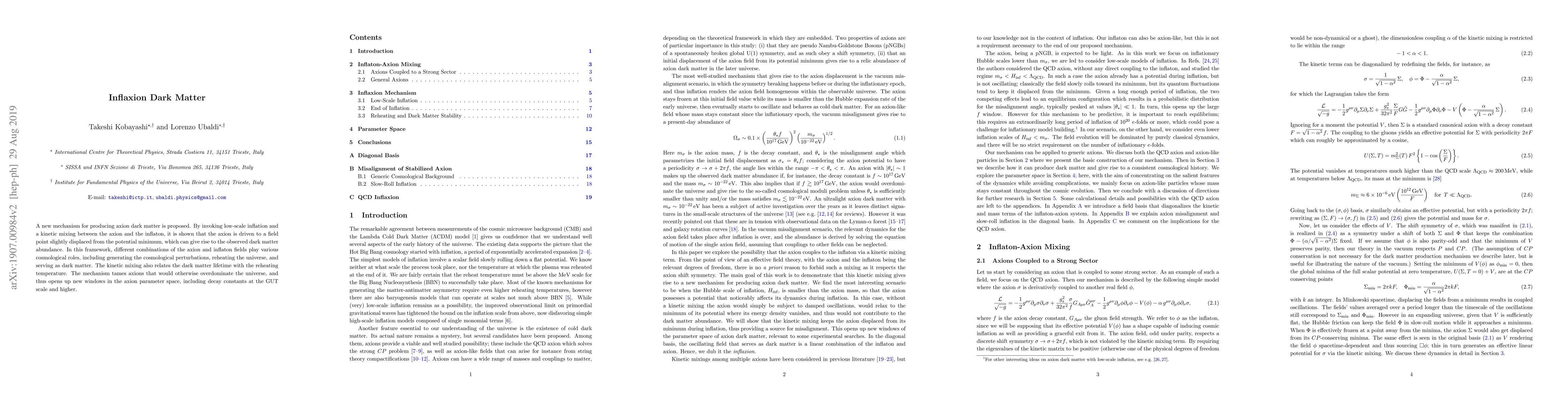 A new mechanism for producing axion dark matter is proposed. By invoking low-scale inflation and a kinetic mixing between the axion and the inflaton, it is shown that the axion is driven to a field point slightly displaced from the potential minimum, which can give rise to the observed dark matter abundance. In this framework, different combinations of the axion and inflaton fields play various cosmological roles, including generating the cosmological perturbations, reheating the universe, and serving as dark matter. The kinetic mixing also relates the dark matter lifetime with the reheating temperature. The mechanism tames axions that would otherwise overdominate the universe, and thus opens up new windows in the axion parameter space, including decay constants at the GUT scale and higher.