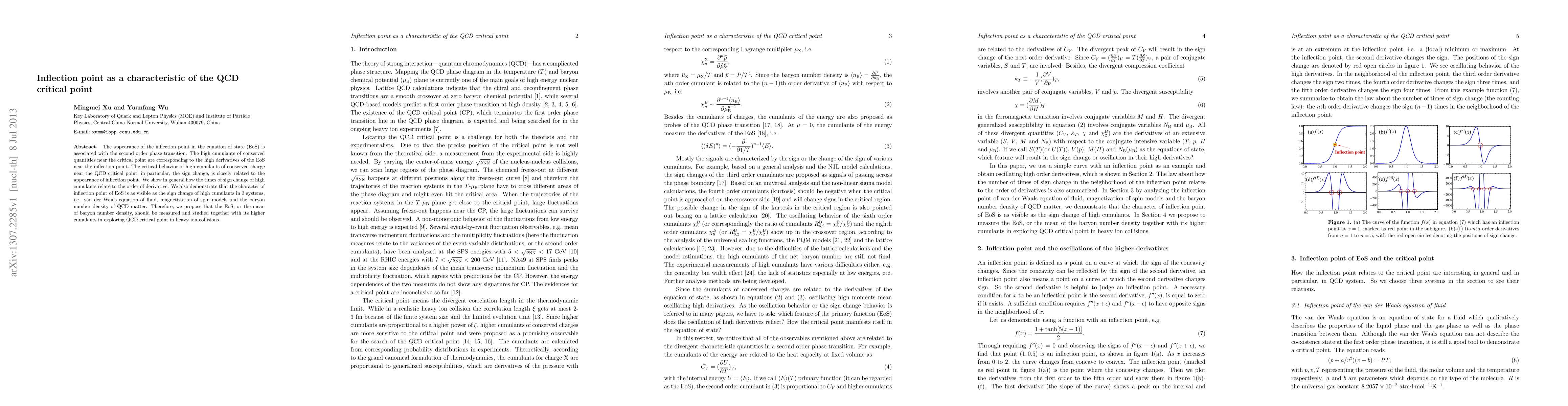 The appearance of the inflection point in the equation of state (EoS) is associated with the second order phase transition. The high cumulants of conserved quantities near the critical point are corresponding to the high derivatives of the EoS near the inflection point. The critical behavior of high cumulants of conserved charge near the QCD critical point, in particular, the sign change, is closely related to the appearance of inflection point. We show in general how the times of sign change of high cumulants relate to the order of derivative. We also demonstrate that the character of inflection point of EoS is as visible as the sign change of high cumulants in 3 systems, i.e., van der Waals equation of fluid, magnetization of spin models and the baryon number density of QCD matter. Therefore, we propose that the EoS, or the mean of baryon number density, should be measured and studied together with its higher cumulants in exploring QCD critical point in heavy ion collisions.