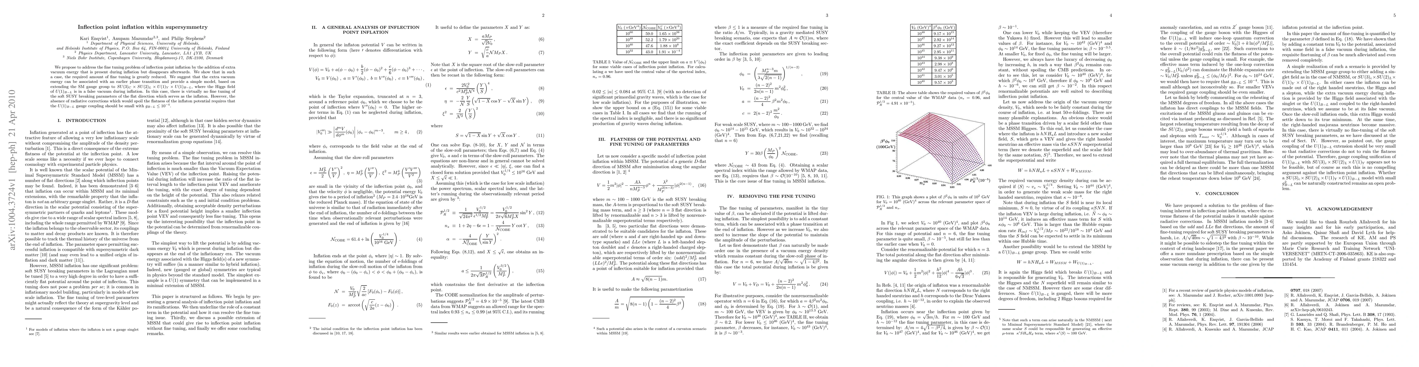 We propose to address the fine tuning problem of inflection point inflation by the addition of extra vacuum energy that is present during inflation but disappears afterwards. We show that in such a case, the required amount of fine tuning is greatly reduced. We suggest that the extra vacuum energy can be associated with an earlier phase transition and provide a simple model, based on extending the SM gauge group to SU(3)_C \times SU(2)_L\times U(1)_Y\times U(1)_{B-L}, where the Higgs field of U(1)_{B-L} is in a false vacuum during inflation. In this case, there is virtually no fine tuning of the soft SUSY breaking parameters of the flat direction which serves as the inflaton. However, the absence of radiative corrections which would spoil the flatness of the inflaton potential requires that the U(1)_{B-L} gauge coupling should be small with g_{B-L}\leq 10^{-4}.