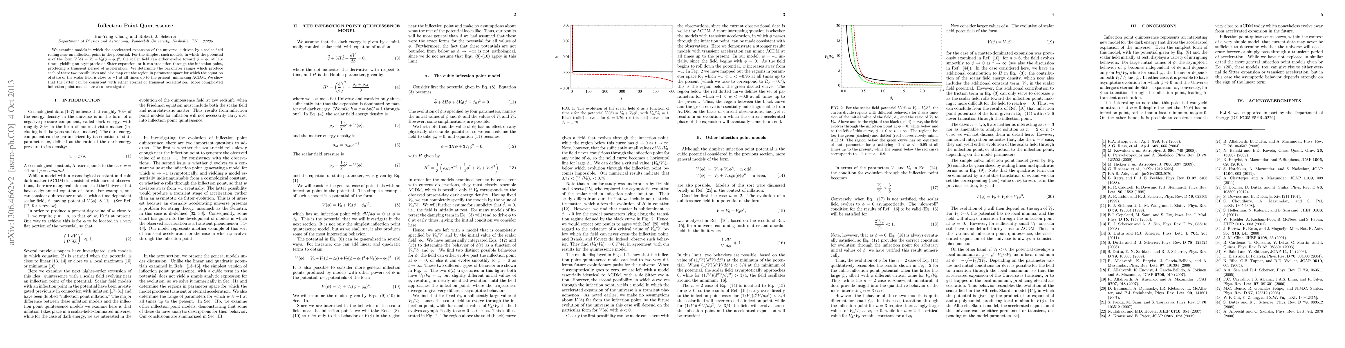 This paper explores scalar field models with an inflection point in the potential that could drive the accelerated expansion of the universe. It determines parameter ranges for asymptotic de Sitter expansion or transient acceleration and identifies regions where the scalar field mimics ΛCDM, consistent with either eternal or transient acceleration.
