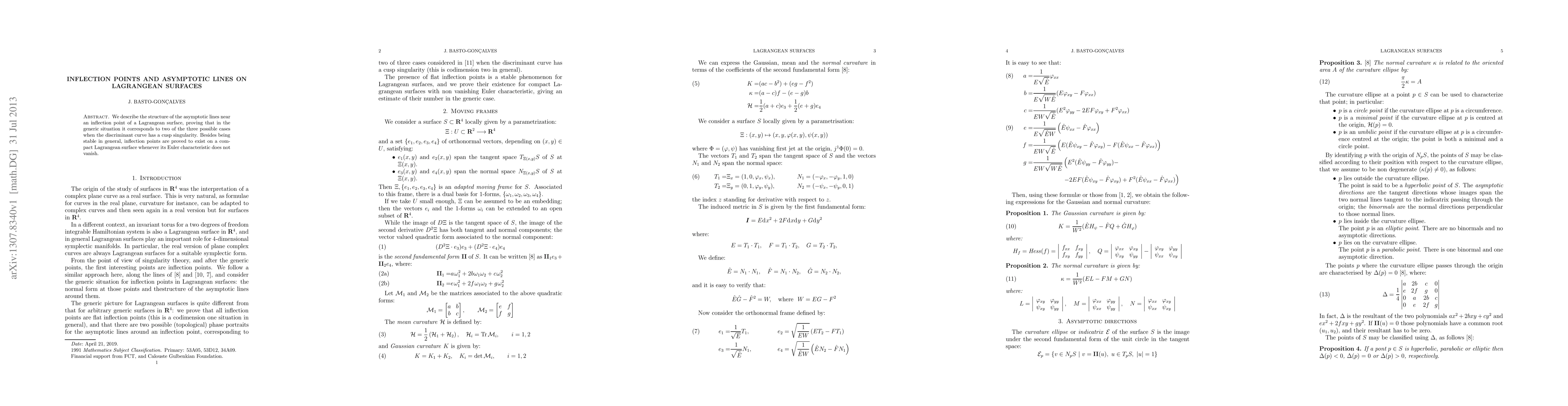 We describe the structure of the asymptotic lines near an inflection point of a Lagrangean surface, proving that in the generic situation it corresponds to two of the three possible cases when the discriminant curve has a cusp singularity. Besides being stable in general, inflection points are proved to exist on a compact Lagrangean surface whenever its Euler characteristic does not vanish.