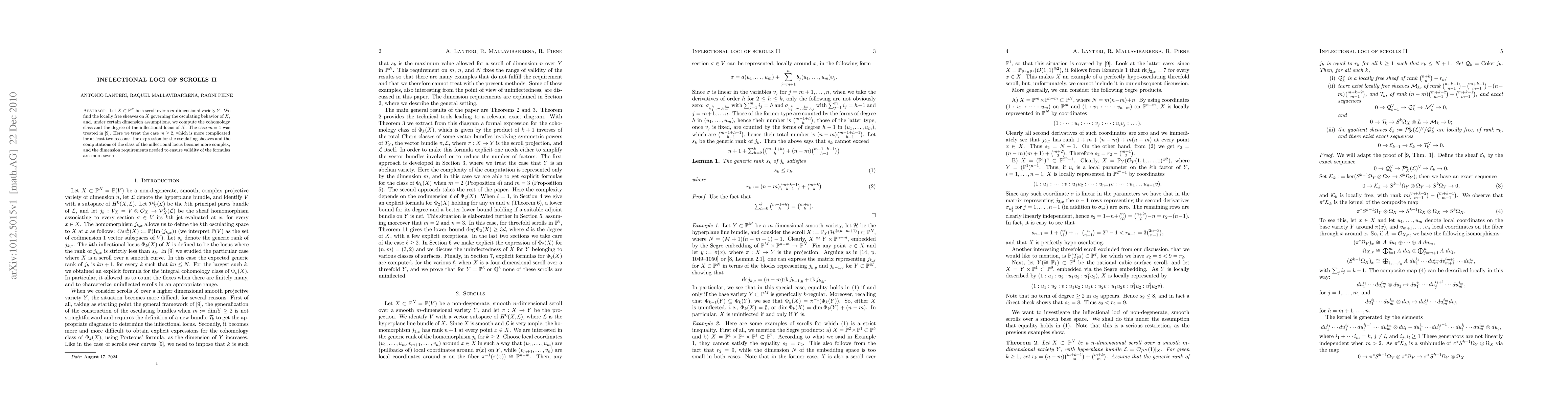 This paper investigates scrolls $X$ over $m$-dimensional varieties $Y$ and identifies the locally free sheaves that govern their osculating behavior. It further computes the cohomology class and degree of the inflectional locus under certain dimension assumptions, extending previous work for $m=1$ to more complex cases where $m \ge 2$.