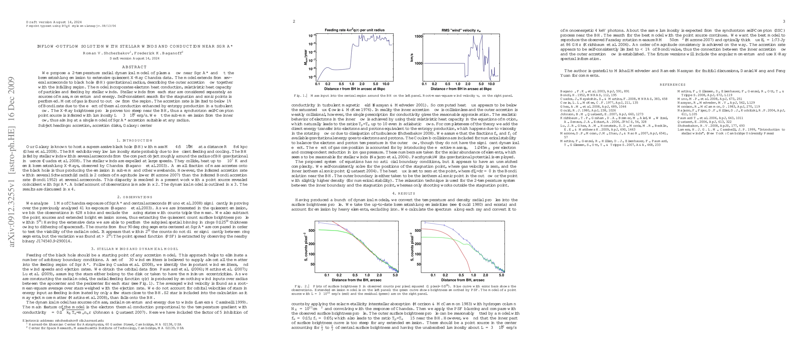 This paper presents a 2-temperature radial dynamical model for plasma flow near Sgr A*, incorporating stellar winds and conduction, and fits the model to X-ray data, finding that gas outflows dominate and the accretion rate is limited by thermal conduction effects. A synchrotron self-Compton point source is inferred to explain the X-ray brightness profile.
