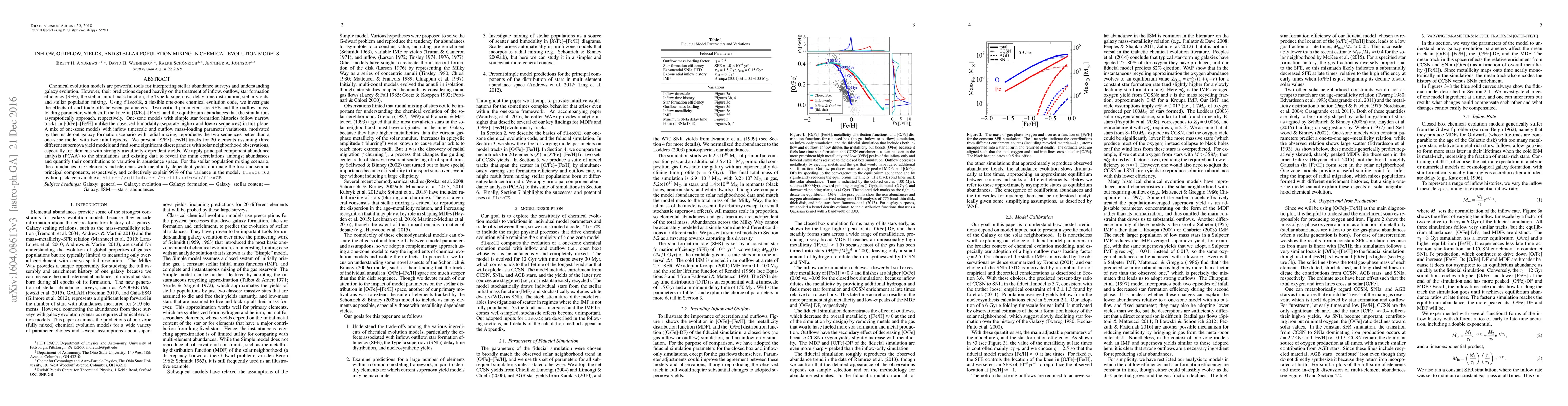This paper uses the flexible one-zone chemical evolution code flexCE to explore the interplay between inflow, outflow, star formation efficiency, and stellar population mixing in modeling galaxy evolution. It finds that a mix of models with varying inflow and outflow parameters better reproduces observed bimodal abundance patterns than simpler models.