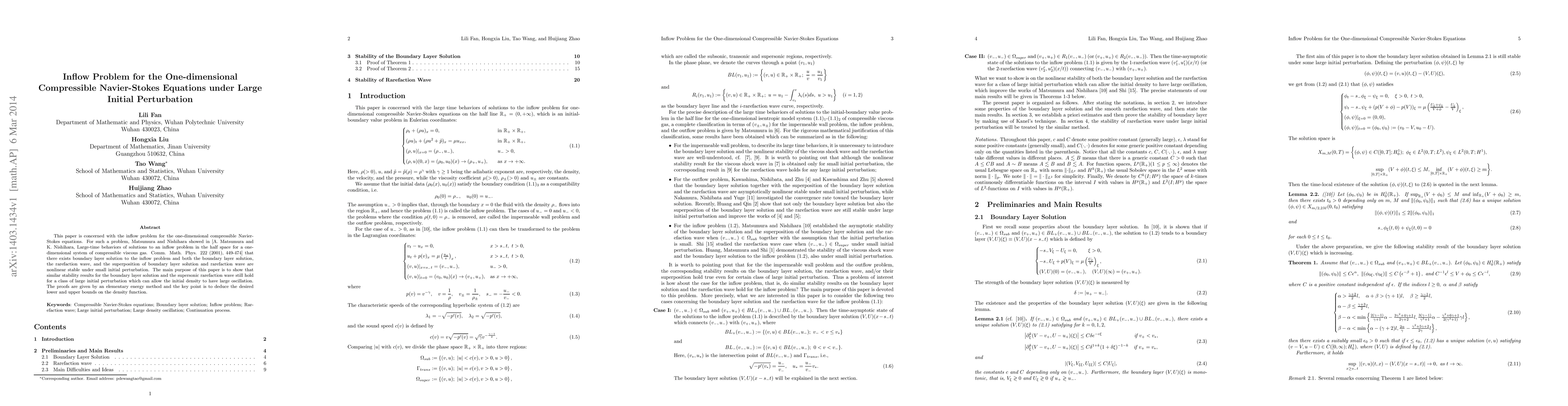 This paper is concerned with the inflow problem for the one-dimensional compressible Navier-Stokes equations. For such a problem, Matsumura and Nishihara showed in [A. Matsumura and K. Nishihara, Large-time behaviors of solutions to an inflow problem in the half space for a one-dimensional system of compressible viscous gas. Comm. Math. Phys. 222 (2001), 449-474] that there exists boundary layer solution to the inflow problem and both the boundary layer solution, the rarefaction wave, and the superposition of boundary layer solution and rarefaction wave are nonlinear stable under small initial perturbation. The main purpose of this paper is to show that similar stability results for the boundary layer solution and the supersonic rarefaction wave still hold for a class of large initial perturbation which can allow the initial density to have large oscillation. The proofs are given by an elementary energy method and the key point is to deduce the desired lower and upper bounds on the density function.