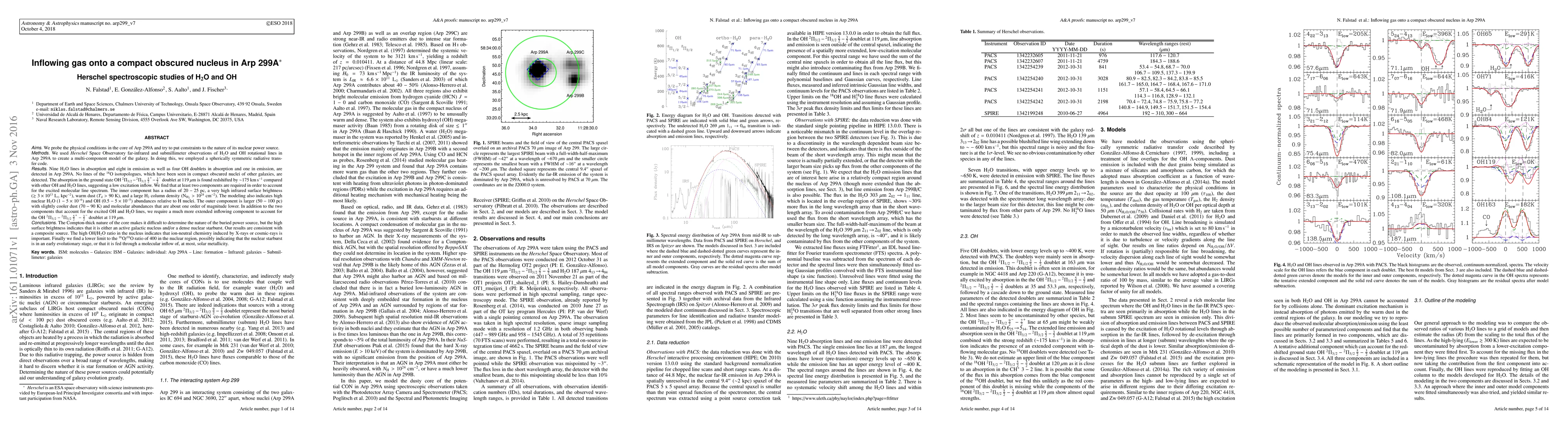 Researchers used Herschel Space Observatory to study Arp 299A's compact obscured nucleus, detecting H2O and OH rotational lines that indicate a low-excitation inflow of gas, suggesting a dense nuclear starburst or active galactic nucleus.