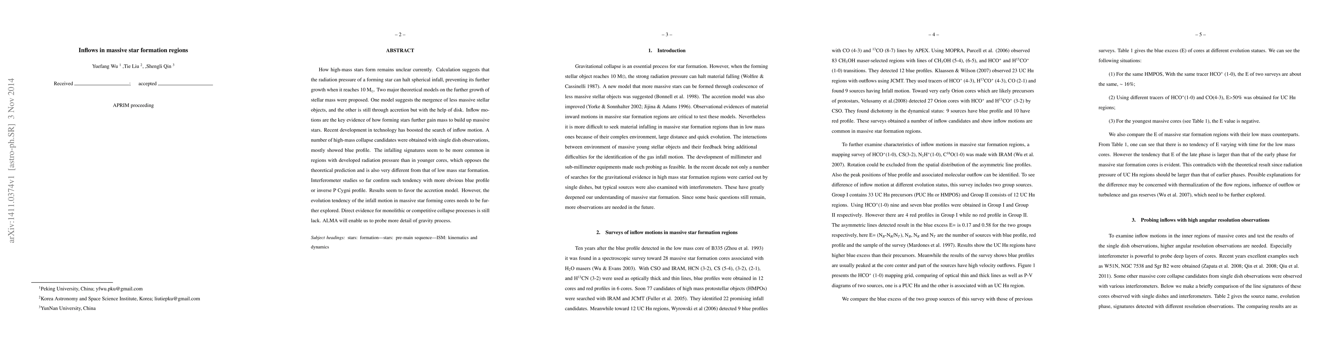 The research utilized single-dish and interferometric observations to study inflow motions in massive star formation regions, comparing results across different evolutionary phases and tracers.