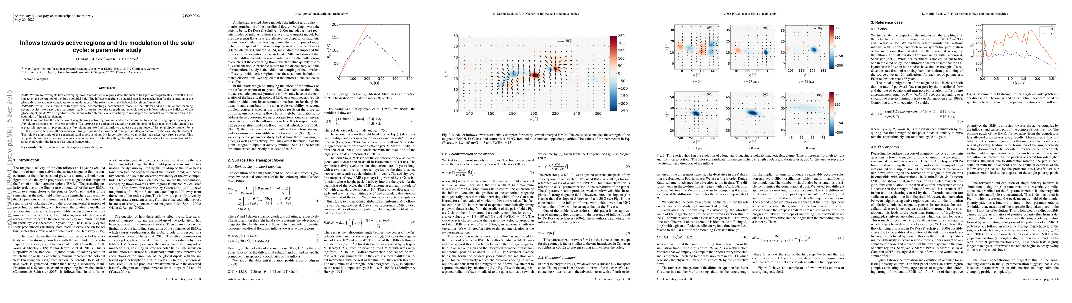 This study investigates how inflows towards active regions influence the solar magnetic field and the solar cycle. It finds that inflows reduce the axial dipole moment by about 30% and suggest they play a role in the saturation of the global dynamo, thus modulating the solar cycle.