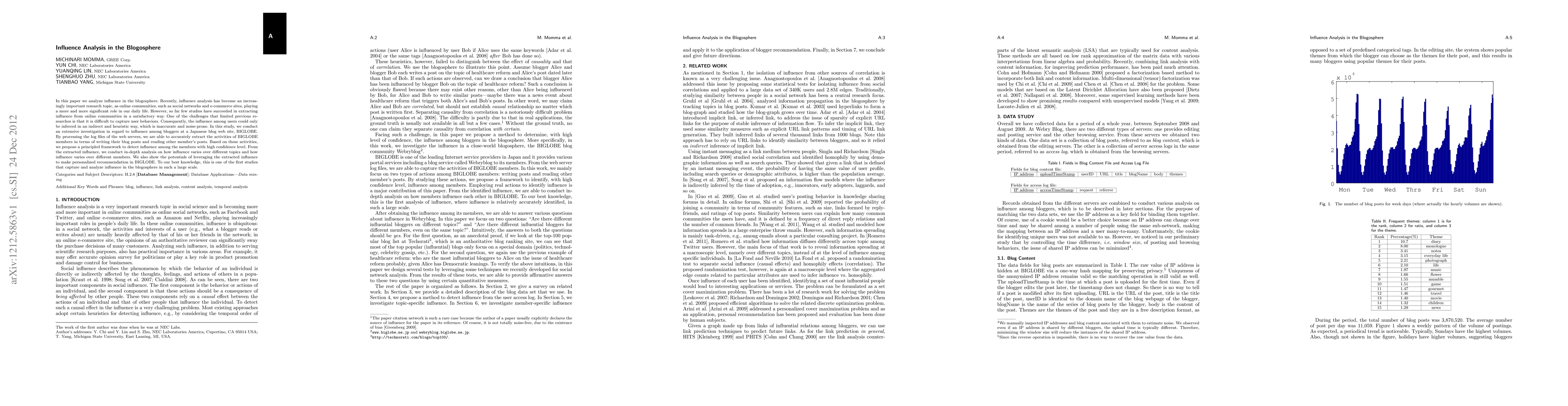 This study analyzes influence in the blogosphere using a large-scale analysis of user activities on a Japanese blog site, proposing a framework to detect influence with high confidence level.