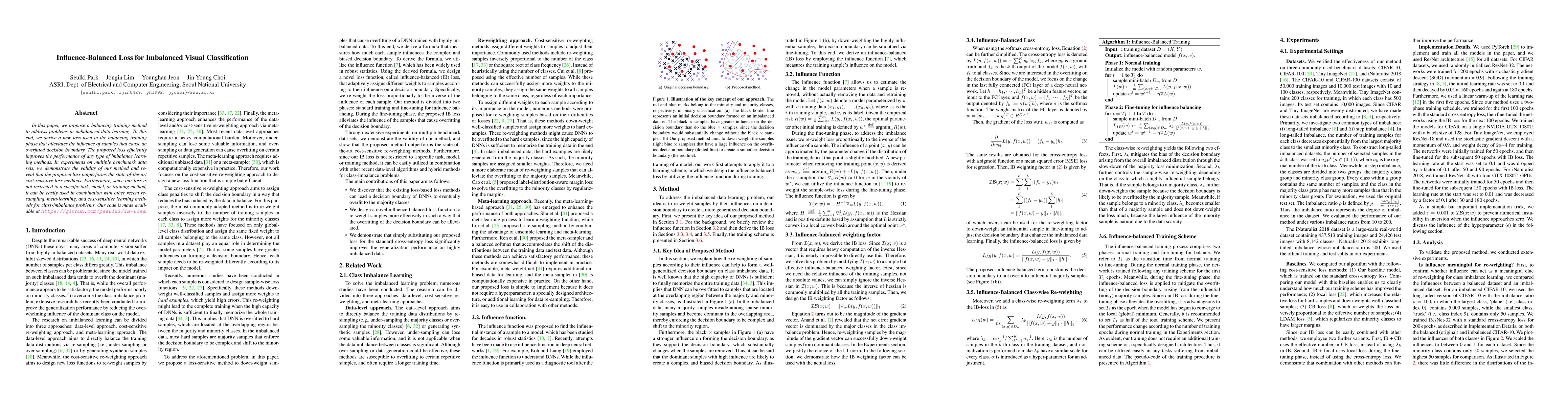 This paper proposes an influence-balanced loss function to tackle imbalanced data in visual classification, which enhances the performance of various imbalance learning methods. Experimental results show that this new loss outperforms existing cost-sensitive methods and is versatile for integration with other techniques for addressing class imbalance.