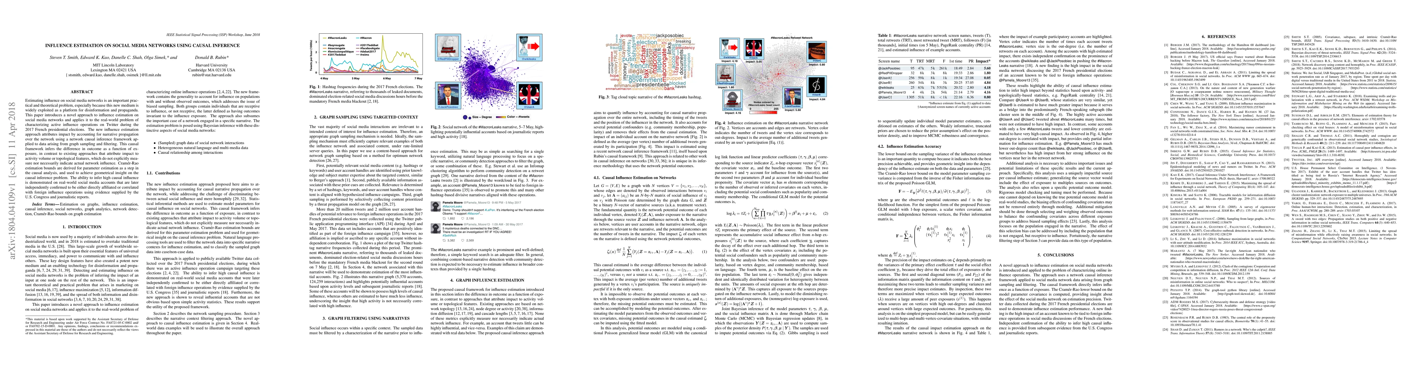 This paper proposes a novel method for estimating influence on social media networks using causal inference, focusing on narrative propagation. It demonstrates the approach on Twitter during the 2017 French presidential elections, showing its effectiveness in identifying accounts linked to foreign influence operations.