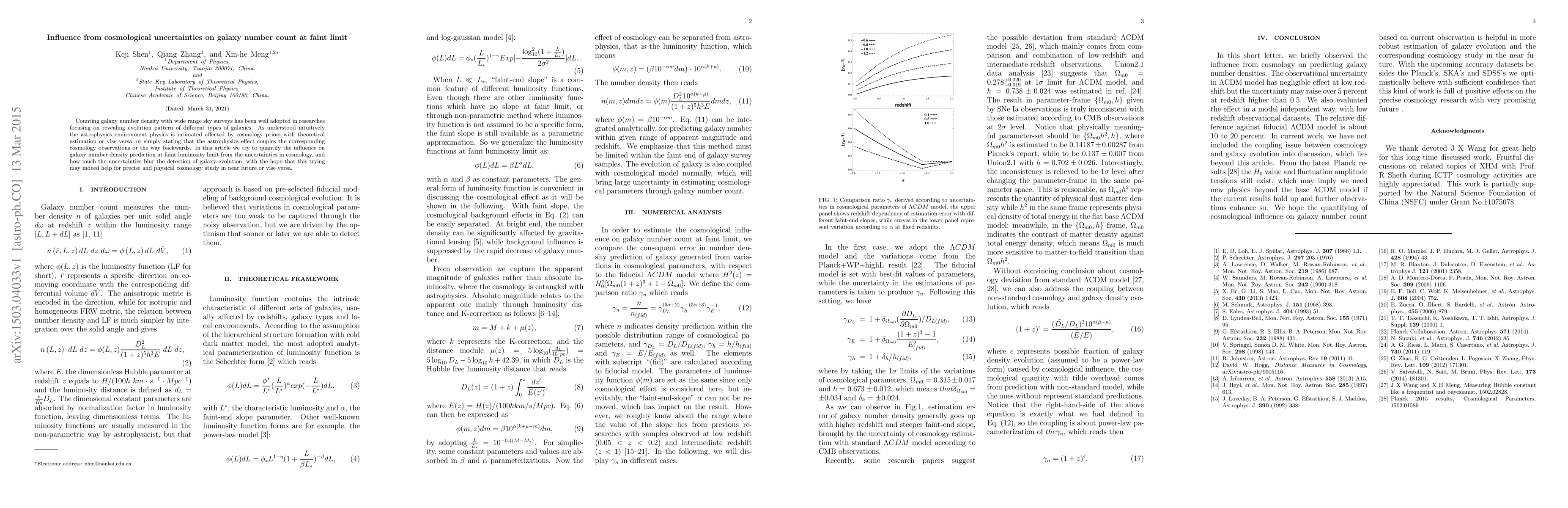 Counting galaxy number density with wide range sky surveys has been well adopted in researches focusing on revealing evolution pattern of different types of galaxies. As understood intuitively the astrophysics environment physics is intimated affected by cosmology priors with theoretical estimation or vise versa, or simply stating that the astrophysics effect couples the corresponding cosmology observations or the way backwards. In this article we try to quantify the influence on galaxy number density prediction at faint luminosity limit from the uncertainties in cosmology, and how much the uncertainties blur the detection of galaxy evolution, with the hope that this trying may indeed help for precise and physical cosmology study in near future or vise versa