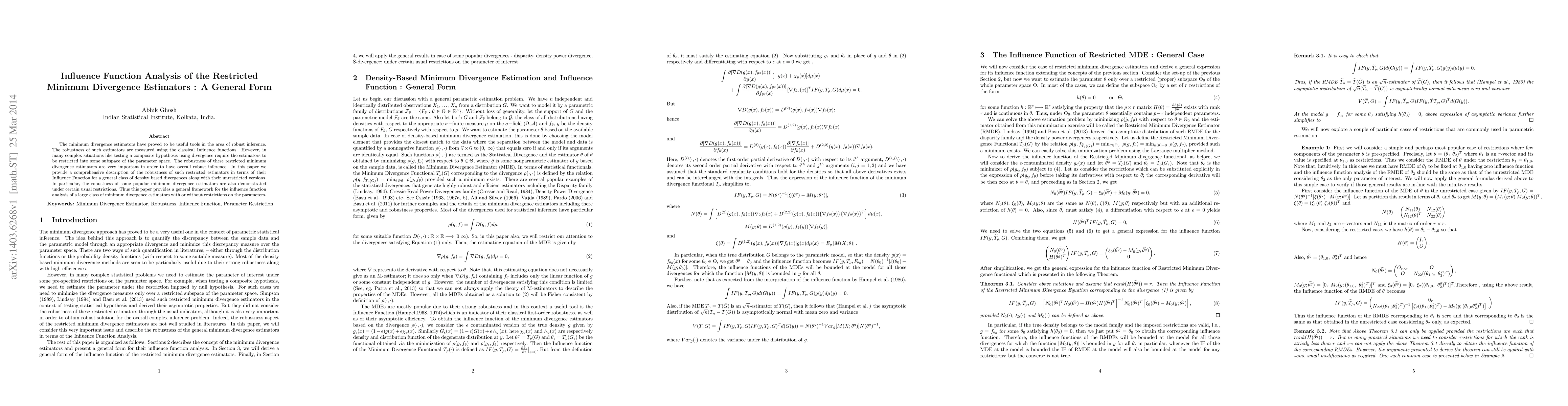 This paper investigates the robustness of restricted minimum divergence estimators through their Influence Functions, providing a comprehensive analysis for a general class of density-based divergences. It demonstrates the robustness of popular estimators under typical parameter restrictions, establishing a general framework for such influence function analyses.