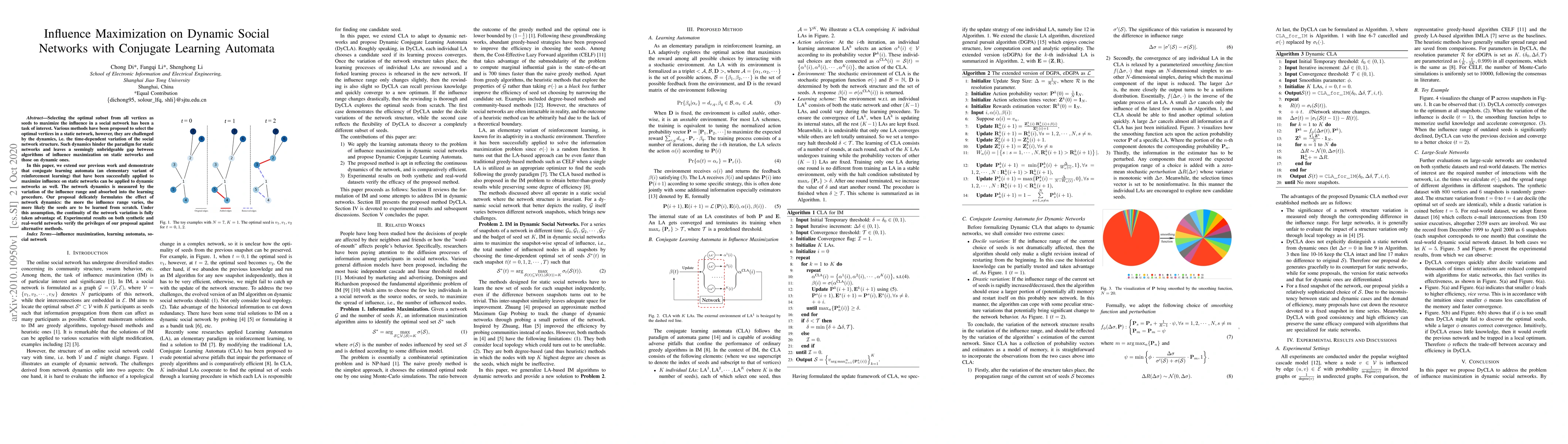 This paper proposes using conjugate learning automata to maximize influence in dynamic social networks, adapting the method to account for time-dependent variations in network structure. Experimental results show that this approach outperforms alternative methods on both synthetic and real-world networks.