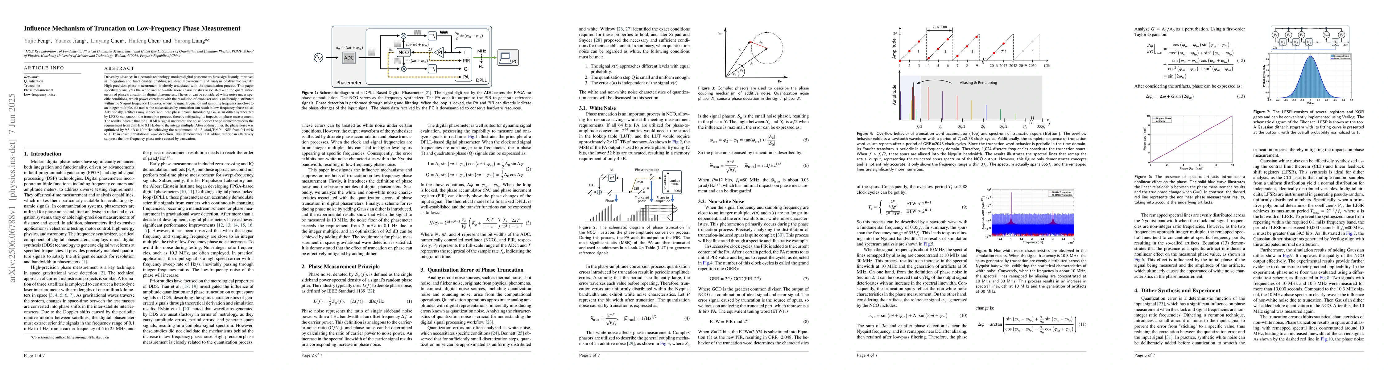 Driven by advances in electronic technology, modern digital phasemeters have significantly improved in integration and functionality, enabling real-time measurement and analysis of dynamic signals. High-precision phase measurement is closely associated with the quantization process. This paper specifically analyzes the white and non-white noise characteristics associated with the quantization errors of phase truncation in digital phasemeters. The error can be considered white noise under specific conditions, which power correlates with the resolution of quantizer and is uniformly distributed within the Nyquist frequency. However, when the signal frequency and sampling frequency are close to an integer multiple, the non-white noise caused by truncation can result in low-frequency phase noise. Additionally, artifacts may induce nonlinear phase errors. Introducing Gaussian dither synthesized by LFSRs can smooth the truncation process, thereby mitigating its impacts on phase measurement. The results indicate that for a 10 MHz signal under test, the noise floor of the phasemeter exceeds the requirement from 2 mHz to 0.1 Hz due to the integer multiple. After adding dither, the phase noise was optimized by 9.5 dB at 10 mHz, achieving the requirement of 1.3 $\rm{\upmu rad/Hz^{1/2}} \cdot \rm{NSF}$ from 0.1 mHz to 1 Hz in space gravitational wave detection. This demonstrates that adding dither can effectively suppress the low-frequency phase noise caused by truncation.