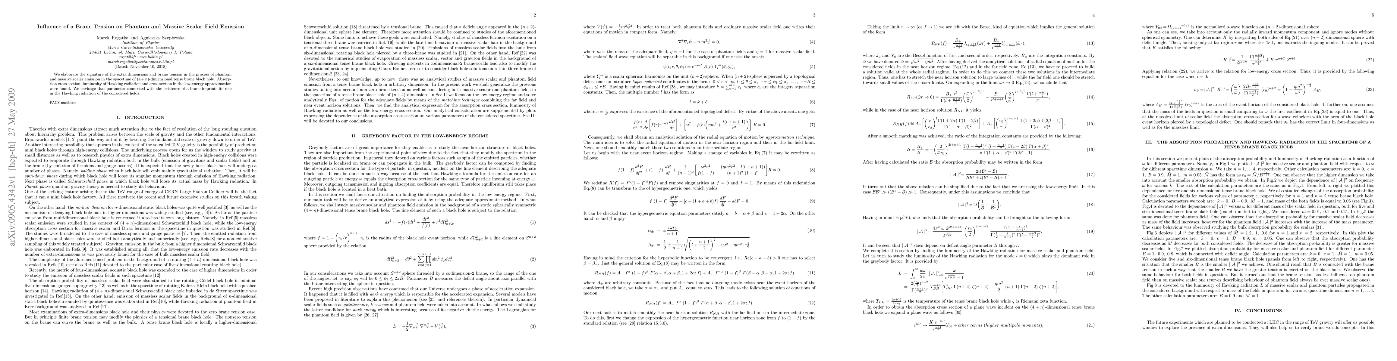 This paper investigates how brane tension influences the emission of phantom and massive scalar fields from a (4+n)-dimensional tense brane black hole, finding that the brane's parameters affect the absorption cross section, luminosity, and low-energy approximation cross section of Hawking radiation.
