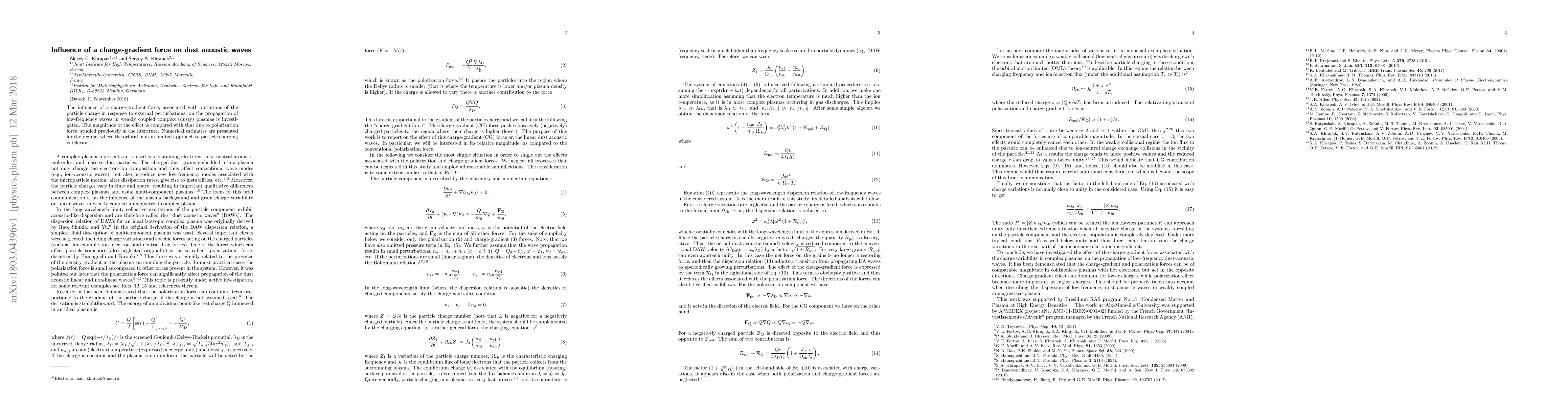 This research examines the impact of charge-gradient force on dust acoustic waves in weakly coupled complex plasmas. It contrasts this effect with the polarization force, providing numerical estimates for the orbital motion limited charging regime.