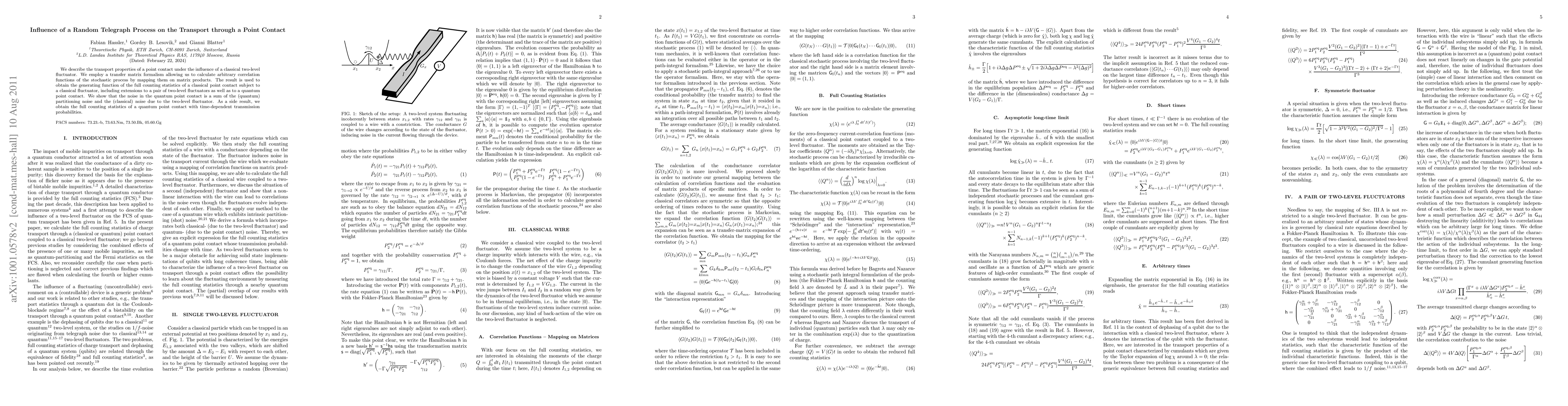 We describe the transport properties of a point contact under the influence of a classical two-level fluctuator. We employ a transfer matrix formalism allowing us to calculate arbitrary correlation functions of the stochastic process by mapping them on matrix products. The result is used to obtain the generating function of the full counting statistics of a classical point contact subject to a classical fluctuator, including extensions to a pair of two-level fluctuators as well as to a quantum point contact. We show that the noise in the quantum point contact is a sum of the (quantum) partitioning noise and the (classical) noise due to the two-level fluctuator. As a side result, we obtain the full counting statistics of a quantum point contact with time-dependent transmission probabilities.