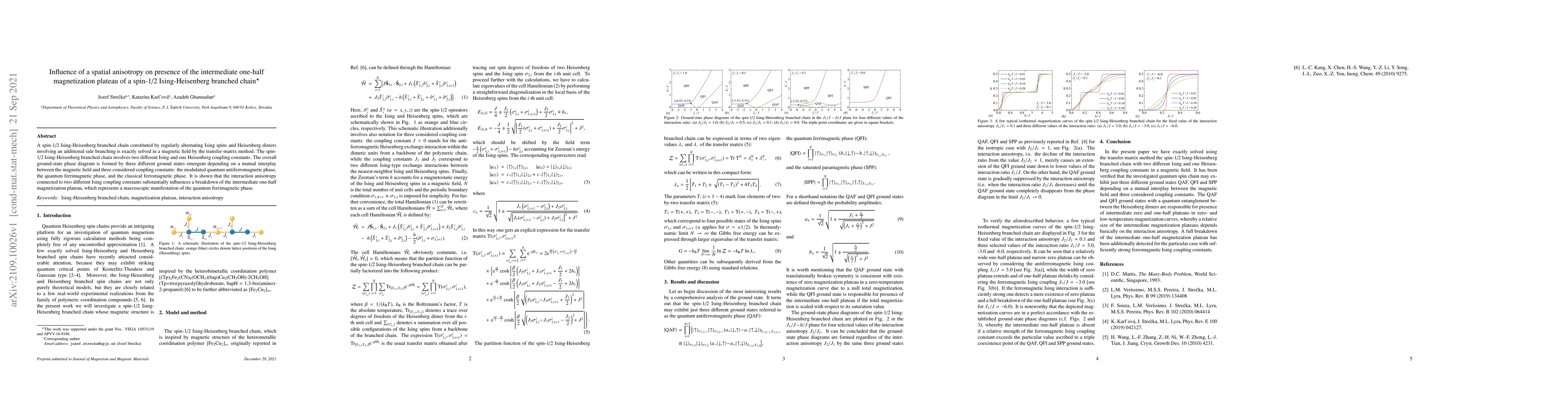 This paper exactly solves a spin-1/2 Ising-Heisenberg branched chain using the transfer-matrix method, revealing three distinct ground states influenced by magnetic field and coupling constants. The spatial anisotropy between different Ising couplings significantly disrupts the intermediate one-half magnetization plateau, a key feature of the quantum ferrimagnetic phase.