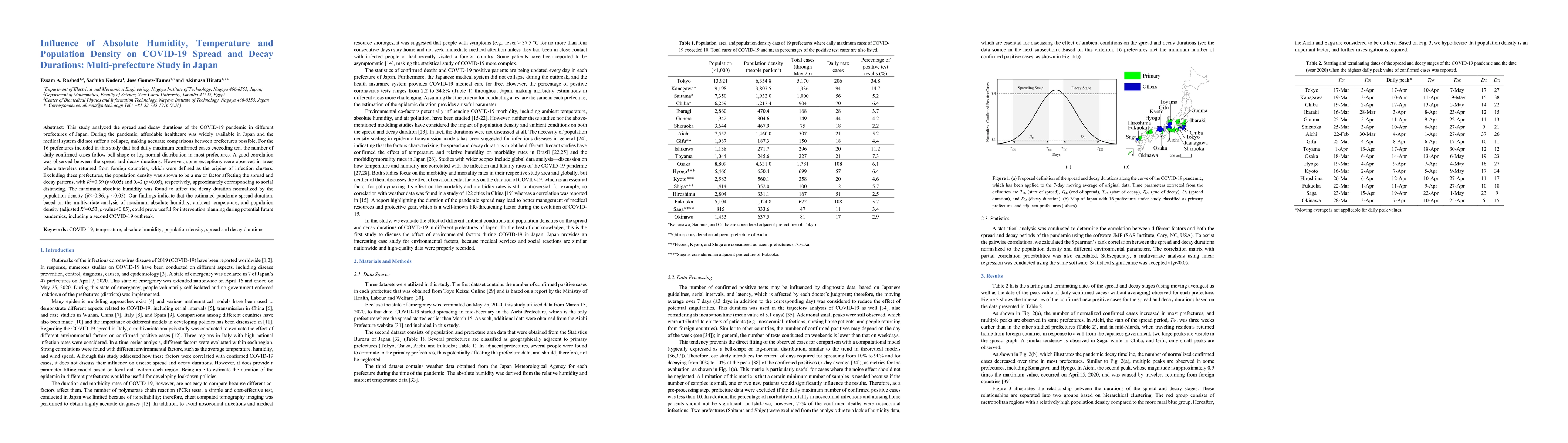 This study examined COVID-19 spread and decay durations across 16 Japanese prefectures, finding that population density and maximum absolute humidity significantly impact these durations. The multivariate analysis suggests useful metrics for planning interventions for future pandemics.