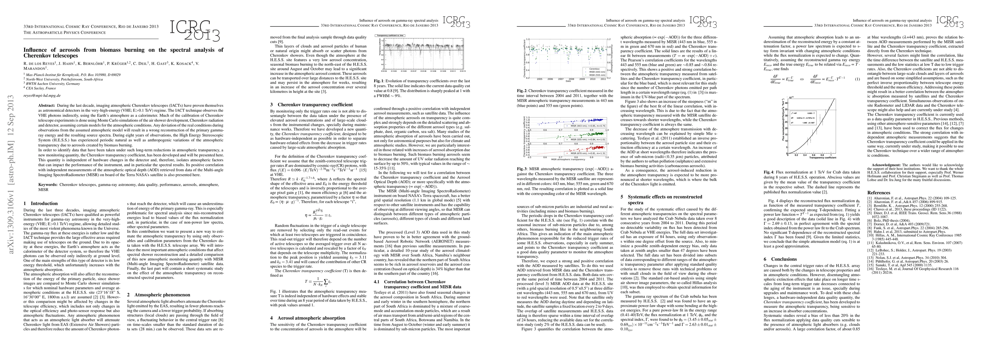 This paper investigates the impact of aerosols from biomass burning on the spectral analysis of Cherenkov telescopes, specifically the High Energy Stereoscopic System (H.E.S.S.). It introduces a new monitoring quantity, the Cherenkov transparency coefficient, to identify observations affected by reduced atmospheric transparency due to aerosols, ensuring accurate reconstruction of gamma-ray energy and spectral results.