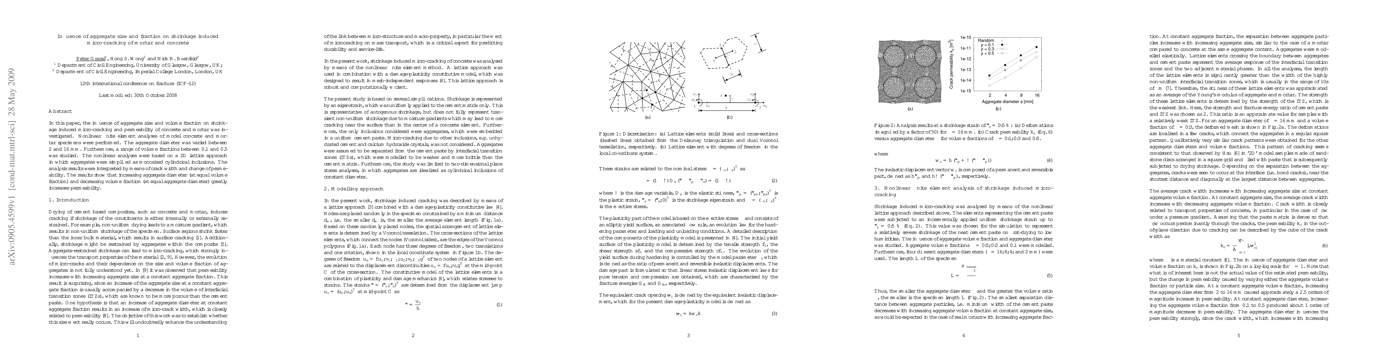 This study investigates how different aggregate sizes and volume fractions affect shrinkage-induced micro-cracking in concrete and mortar, finding that larger aggregates increase permeability.