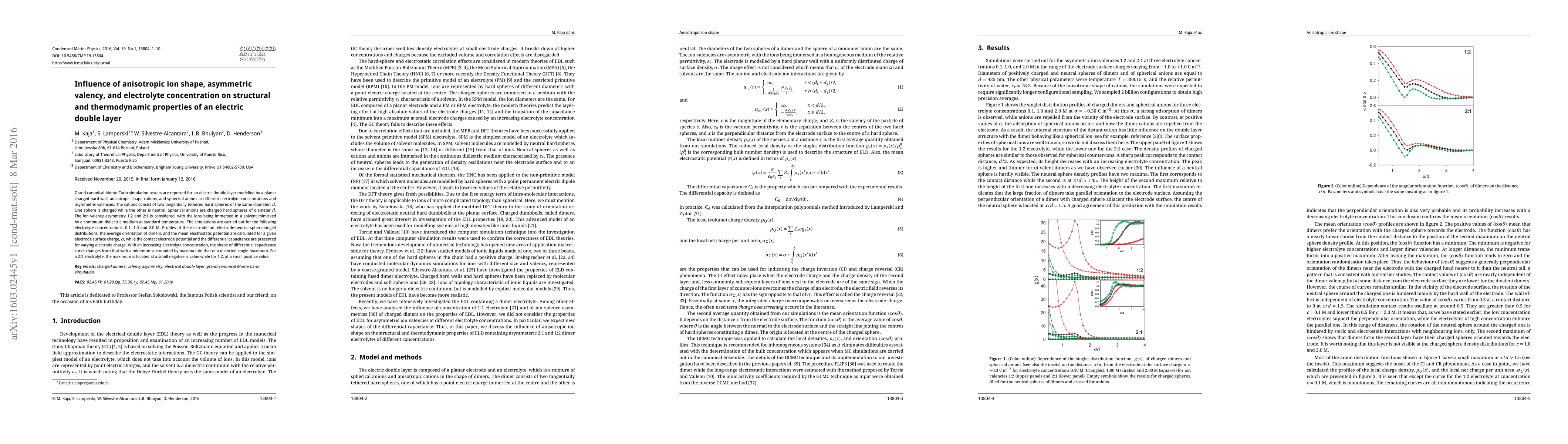 This study uses Grand canonical Monte Carlo simulations to investigate the impact of anisotropic ion shapes, asymmetric valency, and electrolyte concentrations on the structural and thermodynamic properties of an electric double layer. Results show that increasing electrolyte concentration alters the differential capacitance curve shape and shifts the location of its maximum depending on the valency asymmetry.