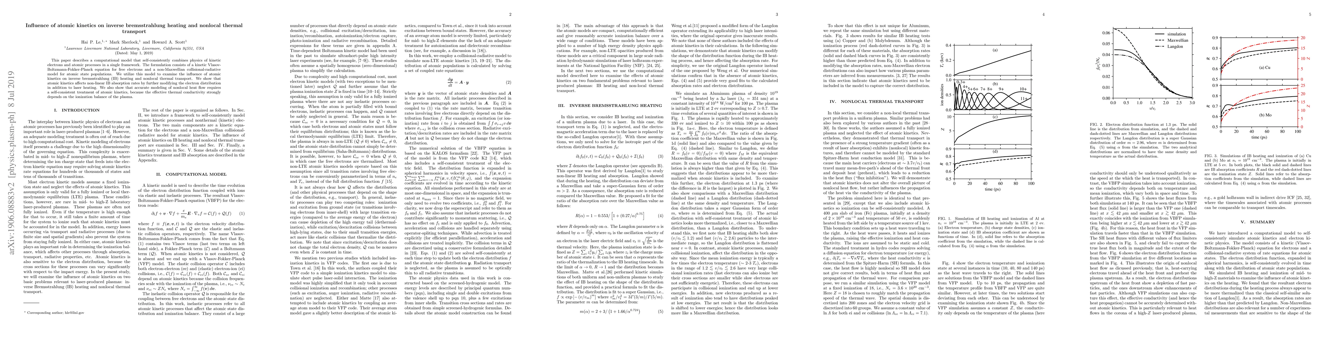 This paper presents a computational model integrating kinetic electron dynamics and atomic processes to study inverse Bremsstrahlung heating and non-local thermal transport. It demonstrates that atomic kinetics significantly influences non-linear IB absorption rates and effective thermal conductivity, necessitating a self-consistent treatment of atomic states for accurate modeling.