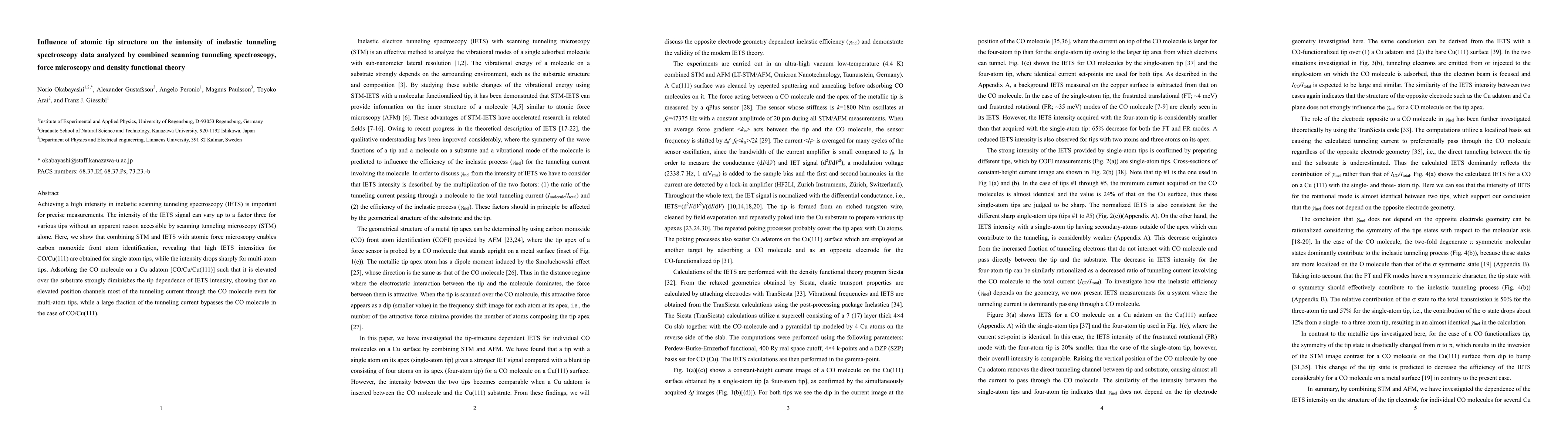 This study reveals that the atomic structure of scanning tunneling microscopy (STM) tips significantly influences the intensity of inelastic tunneling spectroscopy (IETS) data. High IETS intensities for CO on Cu(111) are achieved with single-atom tips, while multi-atom tips show reduced intensity, indicating that the tip's atomic configuration affects the tunneling current distribution.