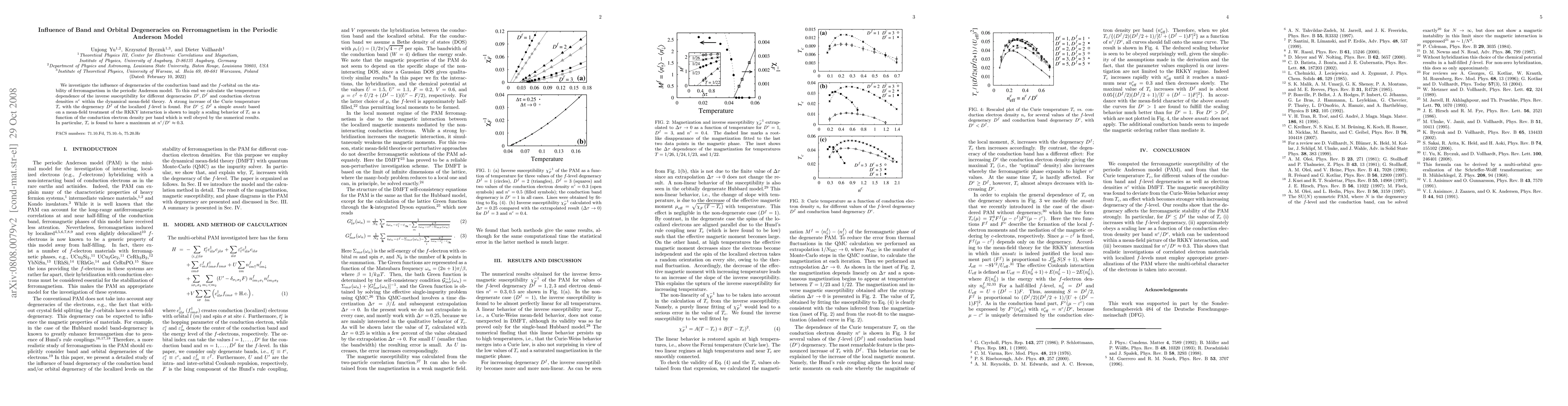 We investigate the influence of degeneracies of the conduction band and the $f$-orbital on the stability of ferromagnetism in the periodic Anderson model. To this end we calculate the temperature dependence of the inverse susceptibility for different degeneracies $D^c, D^f$ and conduction electron densities $n^c$ within the dynamical mean-field theory. A strong increase of the Curie temperature $T_c$ with the degeneracy $D^f$ of the localized $f$-level is found. For $D^c \leq D^f$ a simple \emph{ansatz} based on a mean-field treatment of the RKKY interaction is shown to imply a scaling behavior of $T_c$ as a function of the conduction electron density per band which is well obeyed by the numerical results. In particular, $T_c$ is found to have a maximum at $n^c / D^c\approx 0.3$.