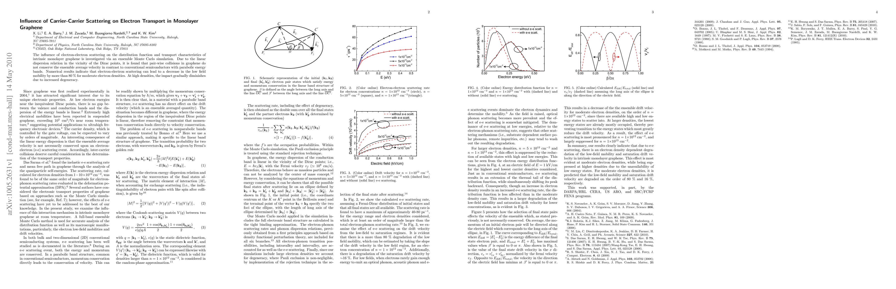 Summary: This study uses Monte Carlo simulations to explore how electron-electron scattering affects electron transport in monolayer graphene, revealing that it significantly reduces low-field mobility by over 80% at moderate densities, with the effect diminishing at higher densities due to increased degeneracy.