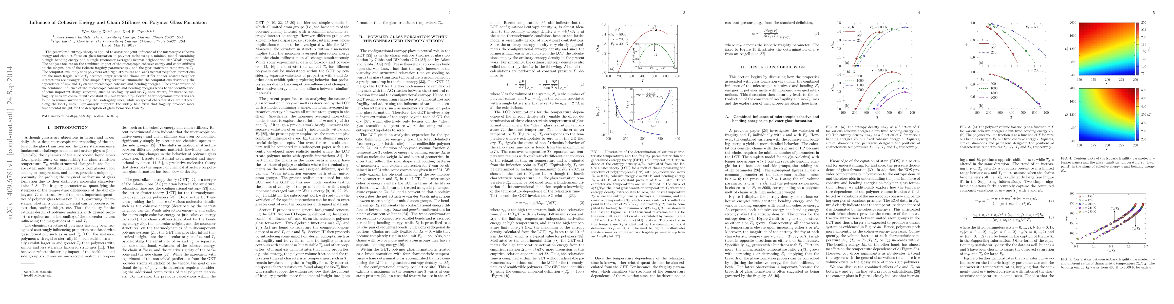 This paper uses generalized entropy theory to explore how cohesive energy and chain stiffness affect polymer glass formation, finding that rigid polymers with weak interactions are more fragile, while stiffer chains or stronger interactions raise the glass transition temperature. The study identifies design concepts like iso-fragility lines, where fragility remains constant despite varying temperature.